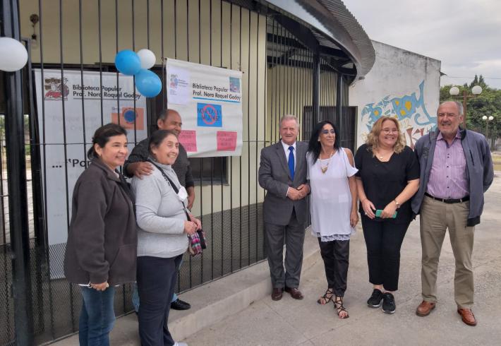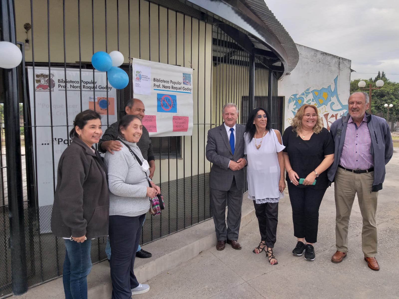 La Biblioteca y la Comunidad luchan para mantener el presupuesto que le permita seguir ofreciendo sus servicios culturales. Nos acompaña el Vice-Gobernador de la Provincia Antonio Marocco junto con autoridades y alumnos de la Escuela Juan José Valle