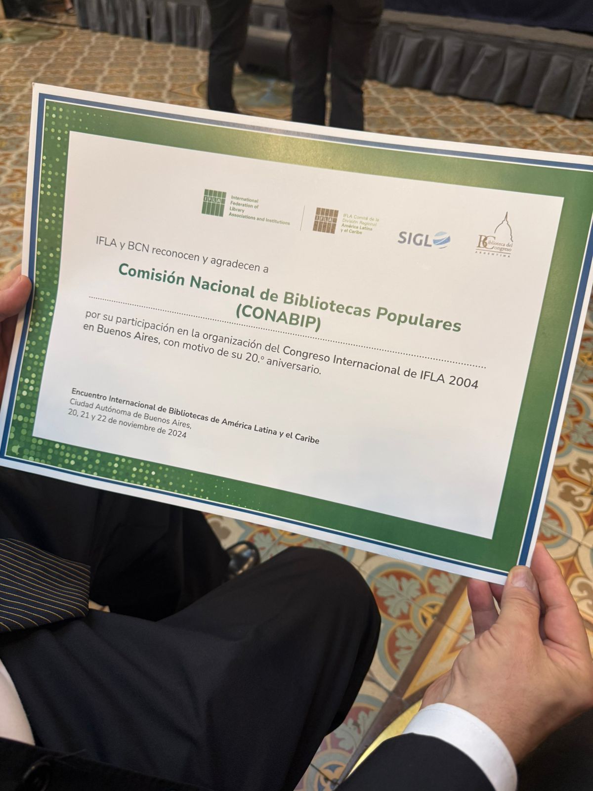 La CONABIP fue distinguida por su participación en la organización del primer Congreso Internacional de IFLA
