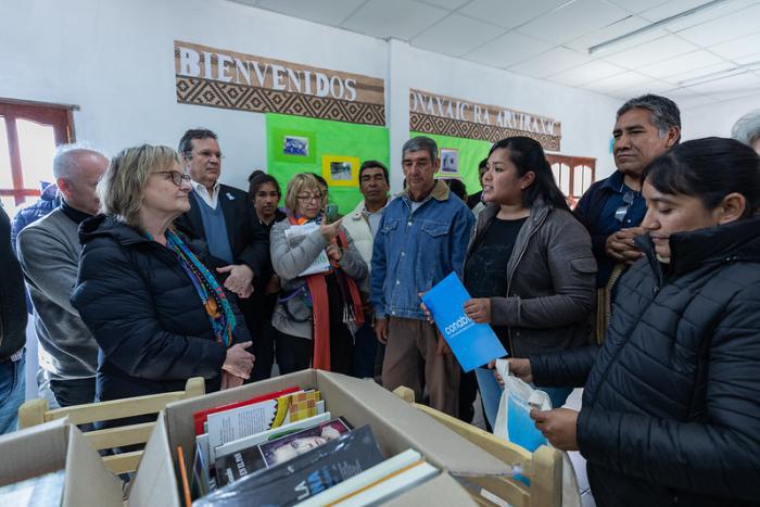 Durante la visita a la Biblioteca, Bianchi aseguró: “Venimos, no a enseñar nada, sino a ofrecer un canal para el aprendizaje mutuo. Y para romper con esta idea de la cultura que cada vez es más global y a la vez: más ajena. Con autores como Juan Chico entendemos la naturaleza del exterminio en Argentina; muchos debieron dejar de hablar la lengua para proteger a los sobrevivientes. Y al perderse una lengua se pierde una cosmovisión: la lengua explica nuestra identidad. Trajimos bibliografía, especialmente para niños, pero lo que esperamos es también acompañar un proceso de producción de otras bibliografías. Inaugurar un trabajo colectivo común, para que la riqueza de esta comunidad, saberes, tradiciones, se pueda plasmar y compartir, no sólo en la comunidad, sino en todas las provincias, porque todo el país las necesita”.