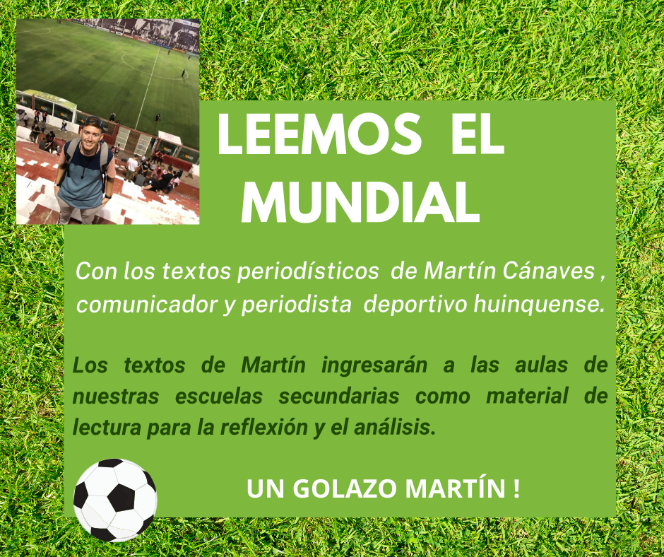 Convocamos a un joven periodista deportivo huinquense ,radicado en Córdoba capital para que nos elaborase textos periodísticos para que ingresen y sean abordados en las aulas de las escuelas de nivel medio de la localidad.