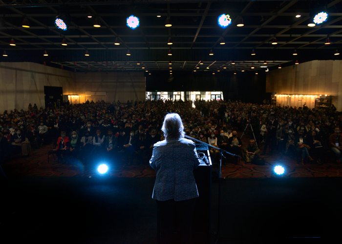En el inicio, la presidenta de la CONABIP, Maria del Carmen Bianchi, dio un discurso fuertemente emotivo, pero también cargado de información, después de dos años de que el programa se llevara adelante de manera virtual, en paralelo con la pandemia.