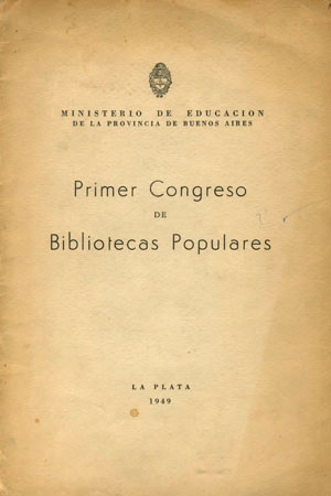 La dirección de Bibliotecas Popilares, dependiente del Ministerio de Educación, con el fin de plantear y estudiar las necesidades generales de las bibliotecas populares, procurar la organización coordinación de los servicios bibliotecarios, promover la vinculación de las bibliotecas entre sí y con los organismos oficiales afines y estudiar las bases para una nueva legislación bibliotecaria, convocan al primer congreso de bibliotecas popualres dela provincia de Buenos Aires, que tendrá lugar en la ciudad de La Plata, del 15 al 18 de diciembre de mil novecientos cuarenta y nueve.
