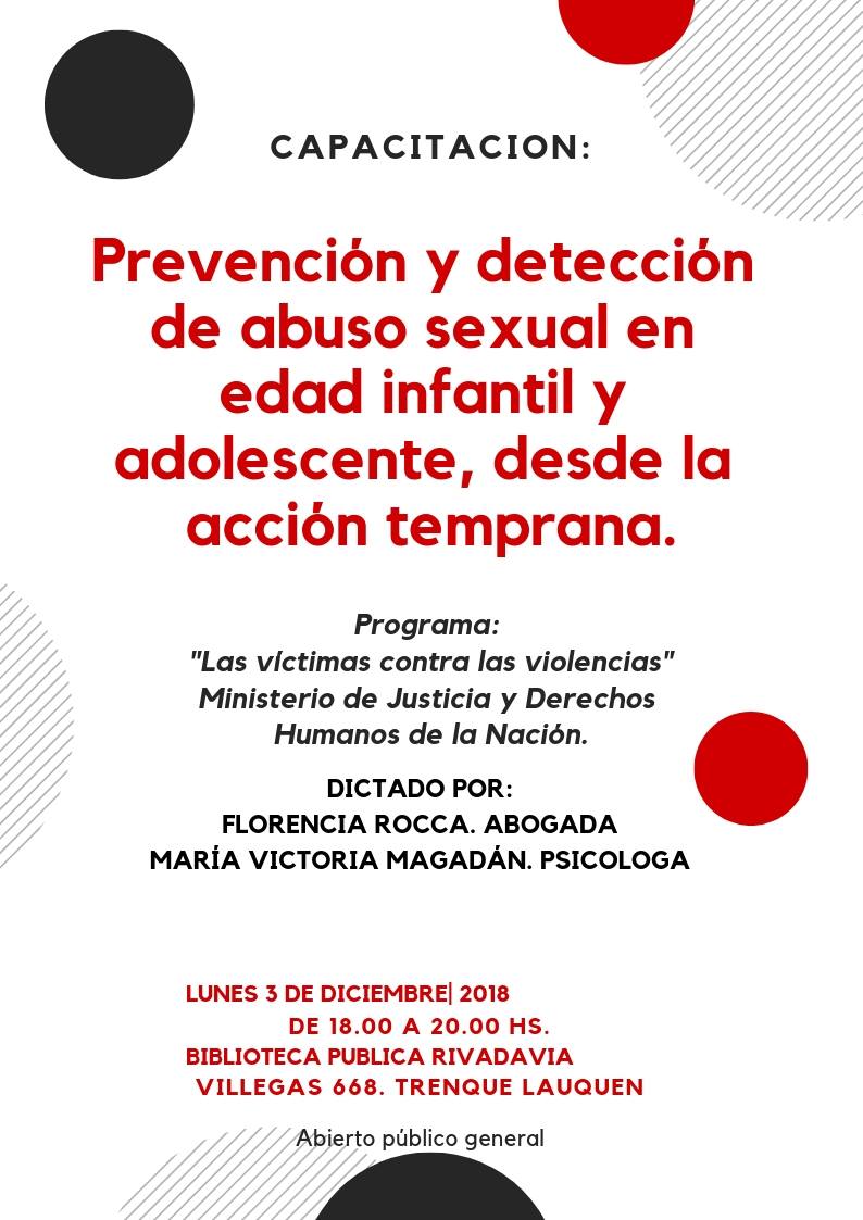 Los invitamos a la capacitación “Prevención y detección de abuso sexual en edad infantil y adolescente, desde la acción temprana”. La misma se realiza en el marco del programa: Las victimas contra las violencias. Ministerio de Justicia y Derechos Humanos