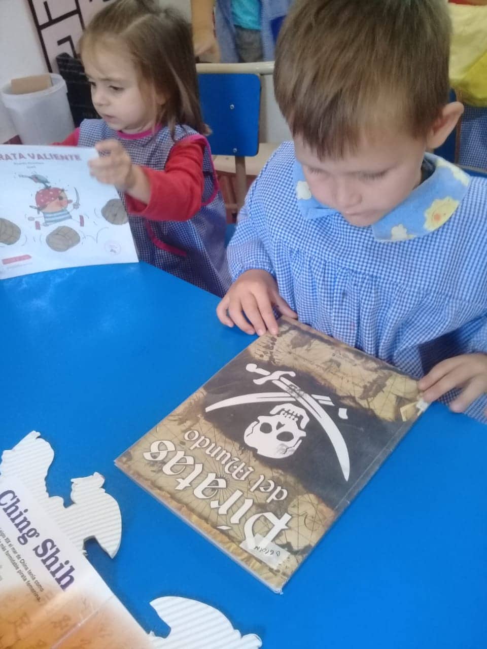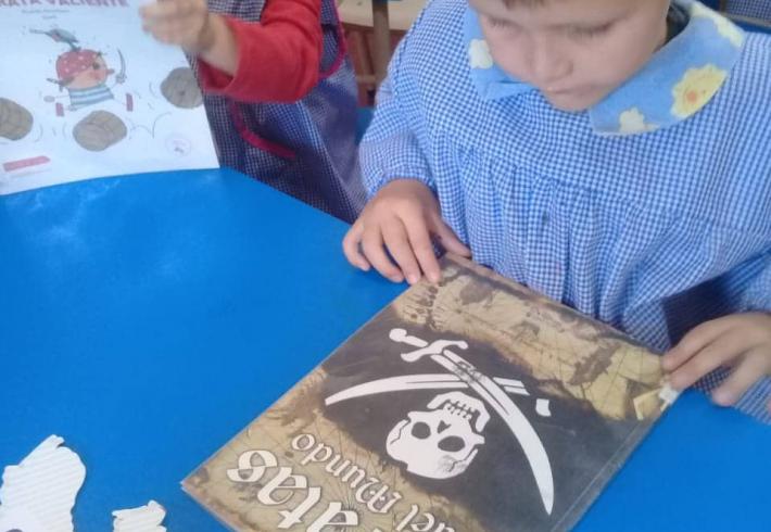 A partir de material selecionado, sobre el tema : piratas , junto a la docente de nivel inicial del Jardín 904, se realizaron diversas actividades.