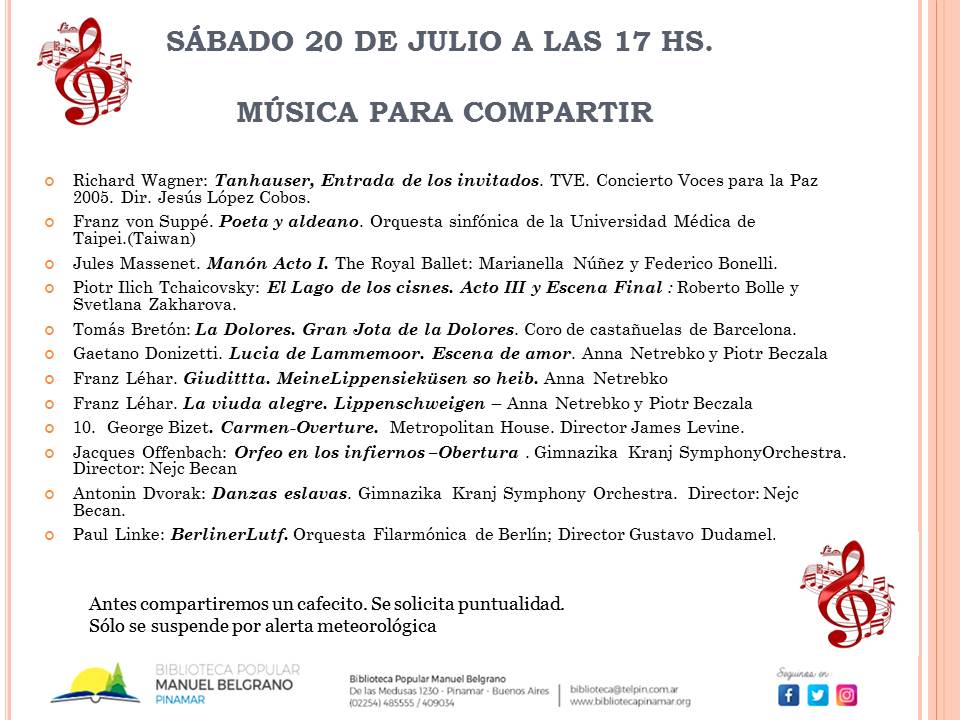 Música para compartir, espacio creado por Amalia Giacumbo y coordinado por Reni Stein. (Al principio se comparte un cafecito) ...
