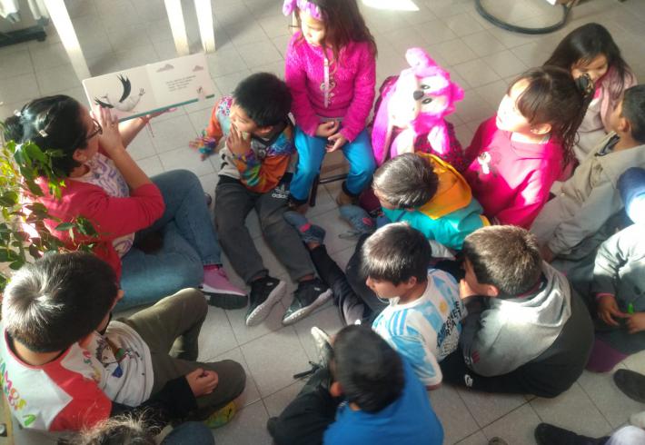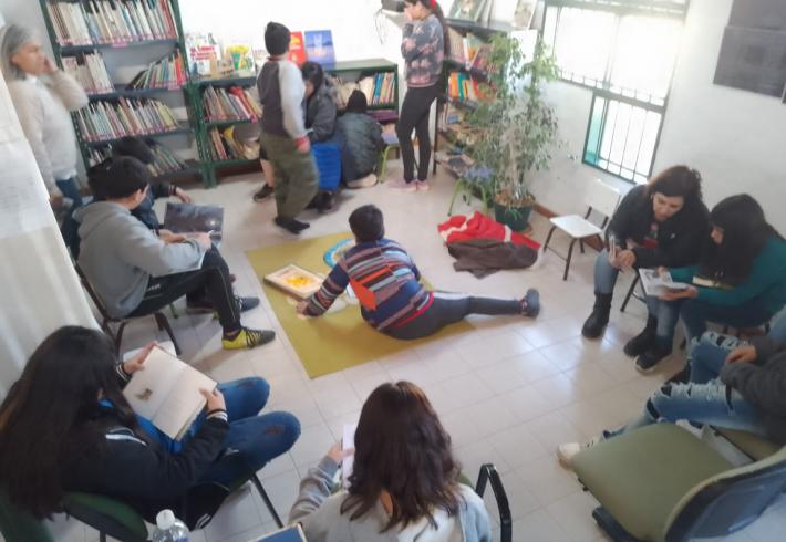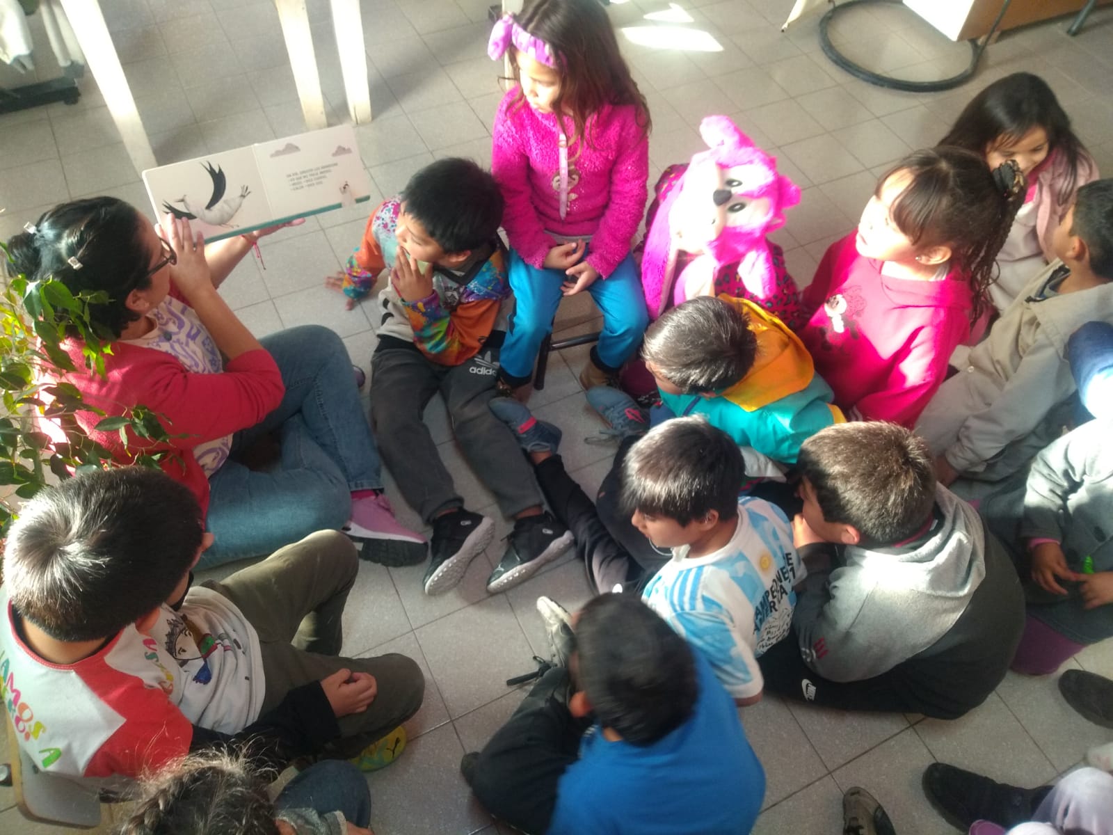 Estas fotos son parte de un proyecto de lectura que compartimos con la Sala de atención a la salud, que hay en el barrio Mosconi, donde funciona nuestra biblioteca. El proyecto se llama "La gota que cae sobre la roca" y busca incentivar, además de la lectura, la posibilidad de que los chicos aprendan a expresar sus pensamientos, sus ideas o que simplemente hablen de lo que sientan. Luego de cada lectura se deja un espacio para el debate, y luego pueden recorren la biblioteca y hagan lo que "quieran", algunos toman los juegos de mesa, otros libros, y otros simplemente quieren que se les siga leyendo.