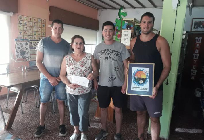 Jovenes profesionales en Educacion Fisica, y fotografia, Marcus, jose Maria, Guillermo, organizadores de La Criolla corre. maraton realizada a beneficio de la Biblioteca Luis Landriscina, Gracias por su aporte