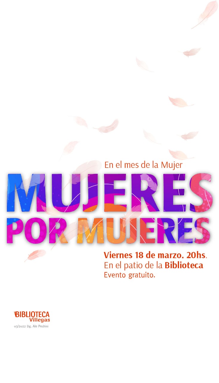 MUJERES X MUJERES En el mes de la mujer, y en el primer evento para adultos del año, rescatamos las figuras de: Susana Cañibano, Hebe Uhart, Catalina Frolik y María Elena Walsh, mujeres relevantes para el mundo de los libros. Música, lecturas y narraciones que nos convocan a detener la mirada en el legado de mujeres tan queridas de nuestra ciudad y nuestro país. Todas comparten el trabajo incansable por la infancia y la docencia, por las historias y los libros, por la dignidad humana, desde el compromiso, la creatividad, el genio y una humildad tan grande como todo lo anterior. Este viernes 18 de marzo a las 20 hs los invitamos a disfrutar,a recordar y emocionarse con Susana, Hebe, Catalina y María Elena. ¡Los esperamos! [Actividad gratuita]