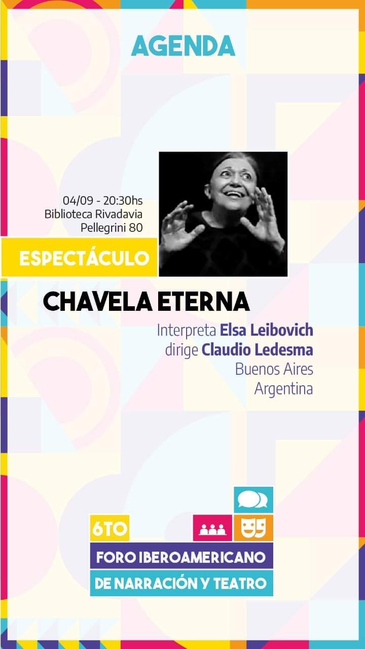 En el marco del 6to FORO IBEROAMERICANO DE NARRACIÓN Y TEATRO organizado por La Fábrica Cultural. Esta Biblioteca histórica se llenará de historias de Chavela Vargas maravillosamente contada por la narradora oral Elsa Leibovich, y con la dirección de Claudio Ledesma. ¡Las y los esperamos! .