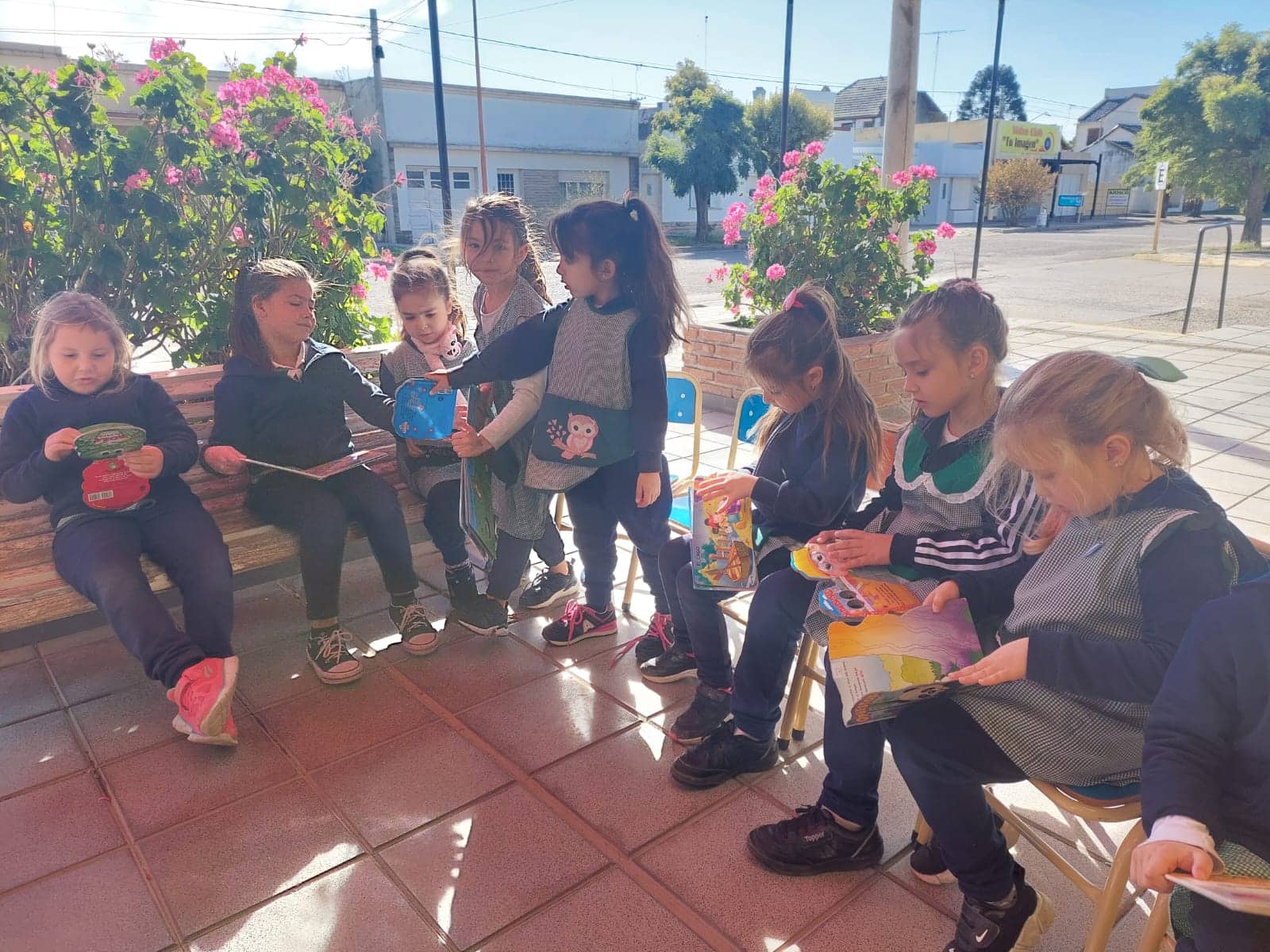 Después de mucho tiempo comenzamos a recibir visitas. Esta es la primera pos pandemia. Alumnos de sala de 5 del Jardín San Antonio, vinieron a conocer la Biblioteca y a disfrutar de los libros de literatura infantil.