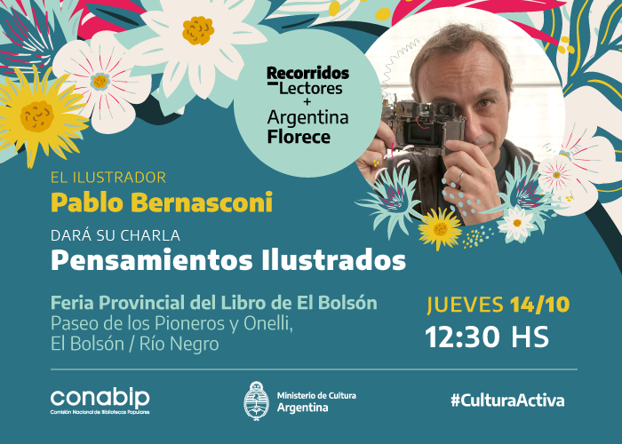 En esta oportunidad y en el marco de la Feria provincial Itinerante del Libro, organizada por la Secretaria de Cultura de Río Negro, el jueves 14 de octubre a las 12:30 Pablo Bernasconi dará su charla “Pensamientos Ilustrados” en Paseo de los Pioneros y Onelli, El Bolsón, Rio Negro.