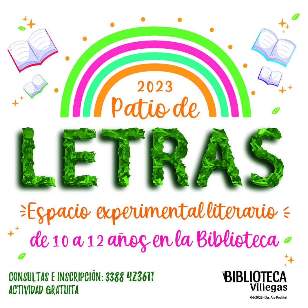 En mayo, el patio de la Biblio se viste de letras para recibir cada martes, de 18.10 a 19 hs, a chicos de entre 10 y 12 años que busquen un espacio para adentrarse en las aguas de los libros. Entre lecturas y charlas, narraciones y sorpresas varias, te esperamos para encontrarte con una dimensión nueva. Coordina el espacio, Valentina Farrell.