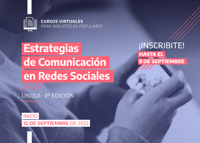 Este curso se propone acercar a las bibliotecas populares herramientas para comprender las condiciones de producción de sus mensajes en las redes y plataformas. Sus objetivos generales son: diagnosticar el estado de la comunicación digital de la institución y propender acciones de comunicación en función de las fortalezas y debilidades reconocidas; identificar públicos objetivos; reconocer diferencias entre redes sociales y plataformas de contenidos; distinguir herramientas lingüísticas y sus usos en función de la estrategia de comunicación; trazar estrategias de comunicación y marketing en redes sociales y plataformas de contenidos.