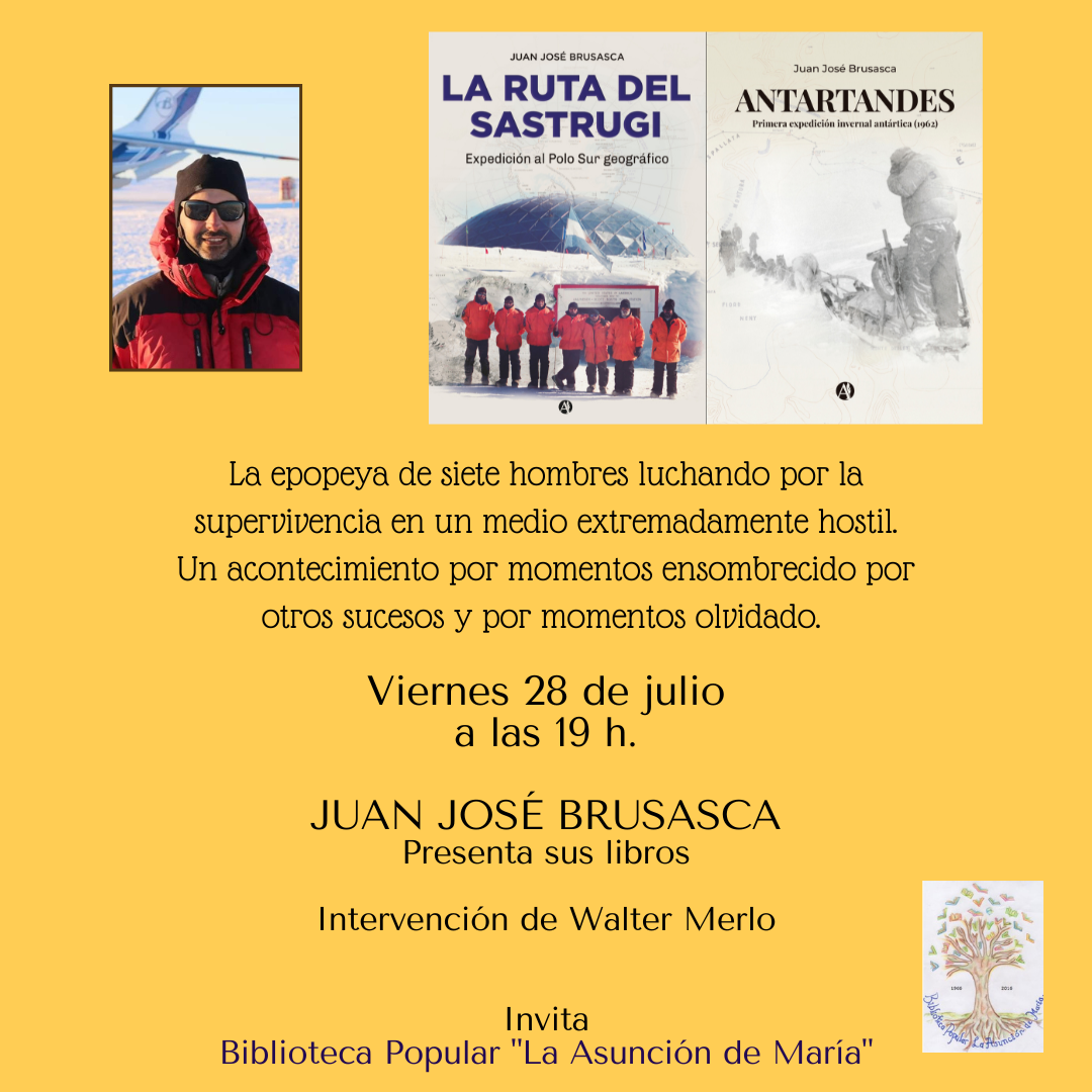 Esta propuesta es diferente, a través de Juan José y sus libros, nos adentraremos en el continente antártico. Con el relato de sus experiencias, desafíos, anécdotas y sobre todo pasión, realizaremos un viaje imaginario de aprendizaje y placer. También estará acompañando con sus melodías Walter Merlo. ¡No te pierdas momentos como este!