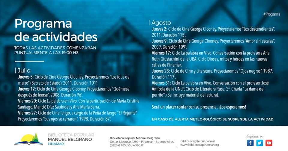 Programa de Actividades Julio y Agosto 2018