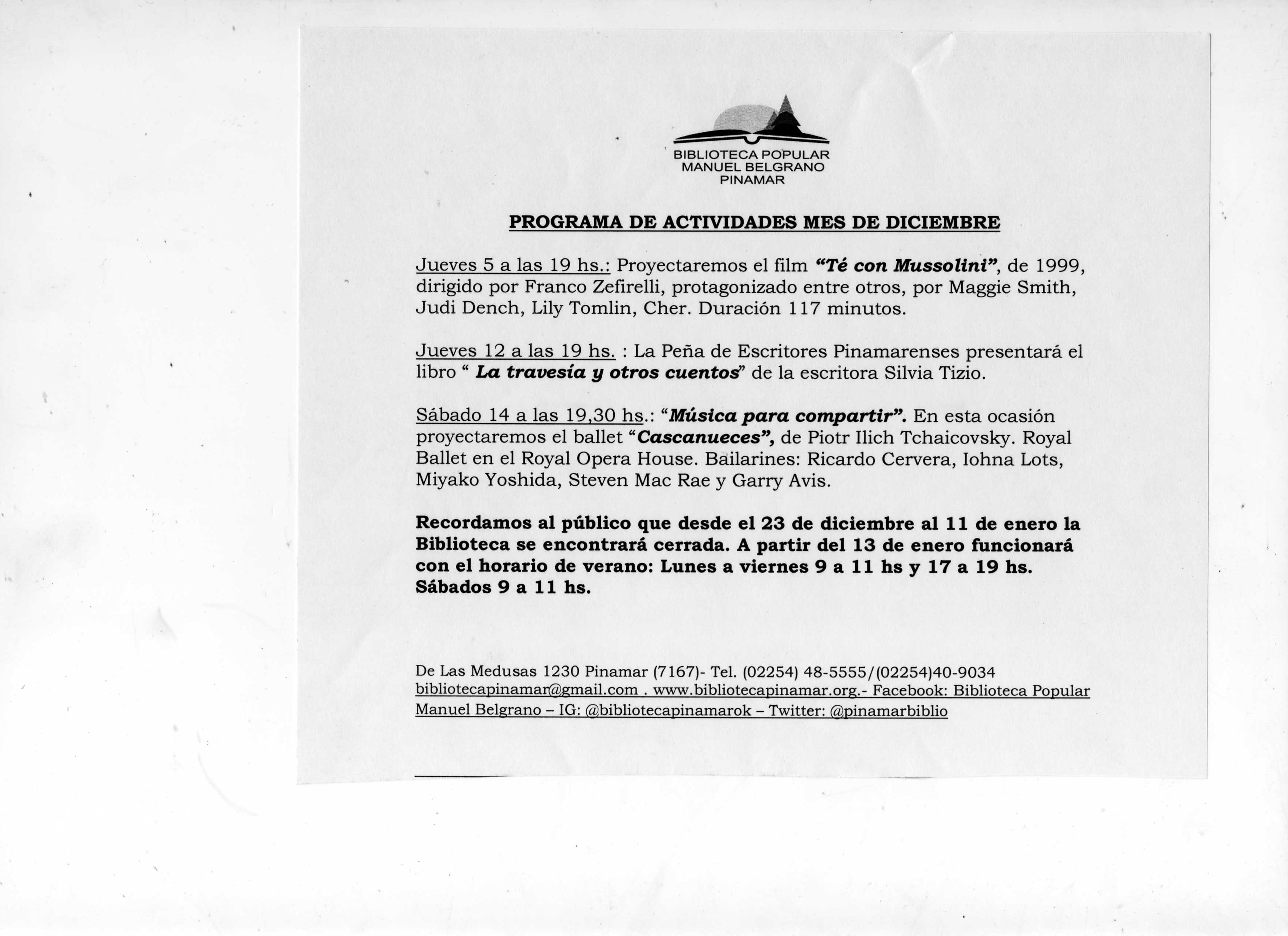 Programación diciembre