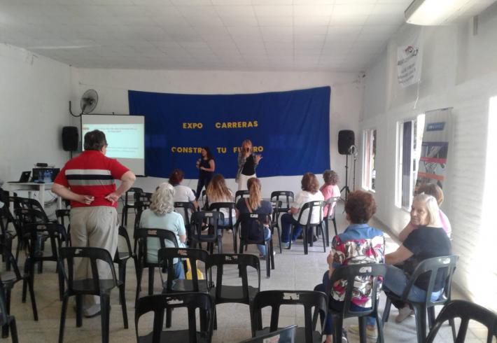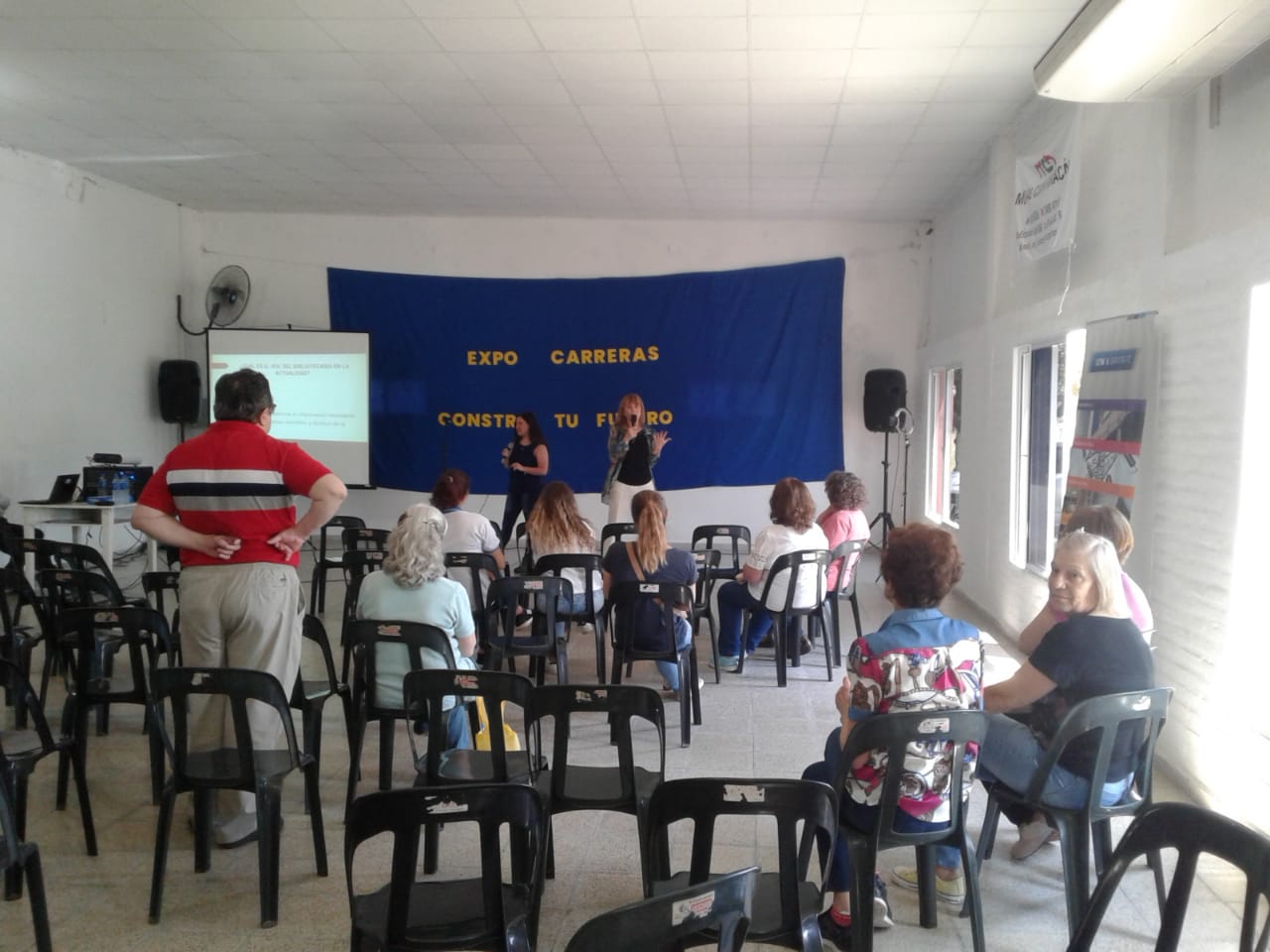 Promocionando la carrera d e Bibliotecologia en Expo carrera pariciparon la sBibliotecarias Graciela Massat, pta del Nucleo Nor-Este Santa fe- y Andrea KernDE la Biblioteca Despertar de Romang Santa Fe.