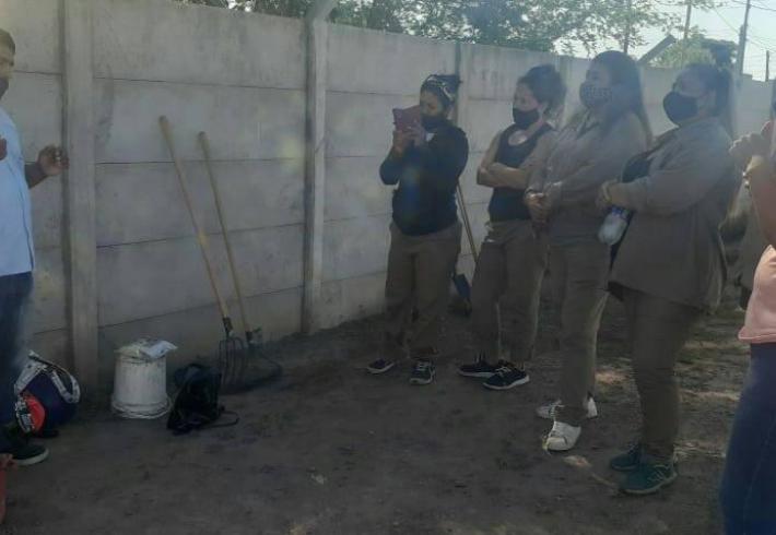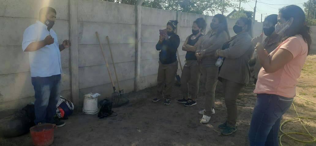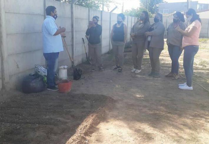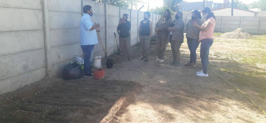 Capacitación del INTA a los beneficiarios del programa POTENCIAR TRABAJO, en nuestra huerta comunitaria. Firmamos convenio con el ministro de Desarrollo Social de la provincia, Dr. Angel Nicolai, para llevarlo a cabo.