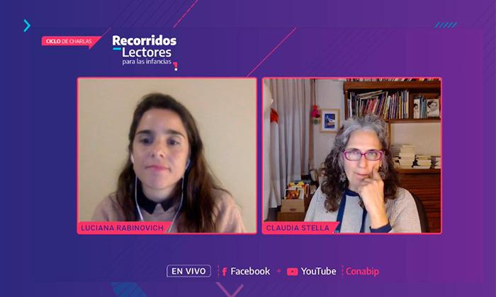 En la segunda jornada del ciclo Recorridos lectores para las infancias, que organiza la CONABIP durante julio y agosto, la narradora, escritora y capacitadora Claudia Stella brindó una charla titulada “Narrar, leer con niñas y niños pequeños: una presencia, una piedra al agua” en la que expuso algunas herramientas y estrategias para mediadores y mediadoras de lectura.