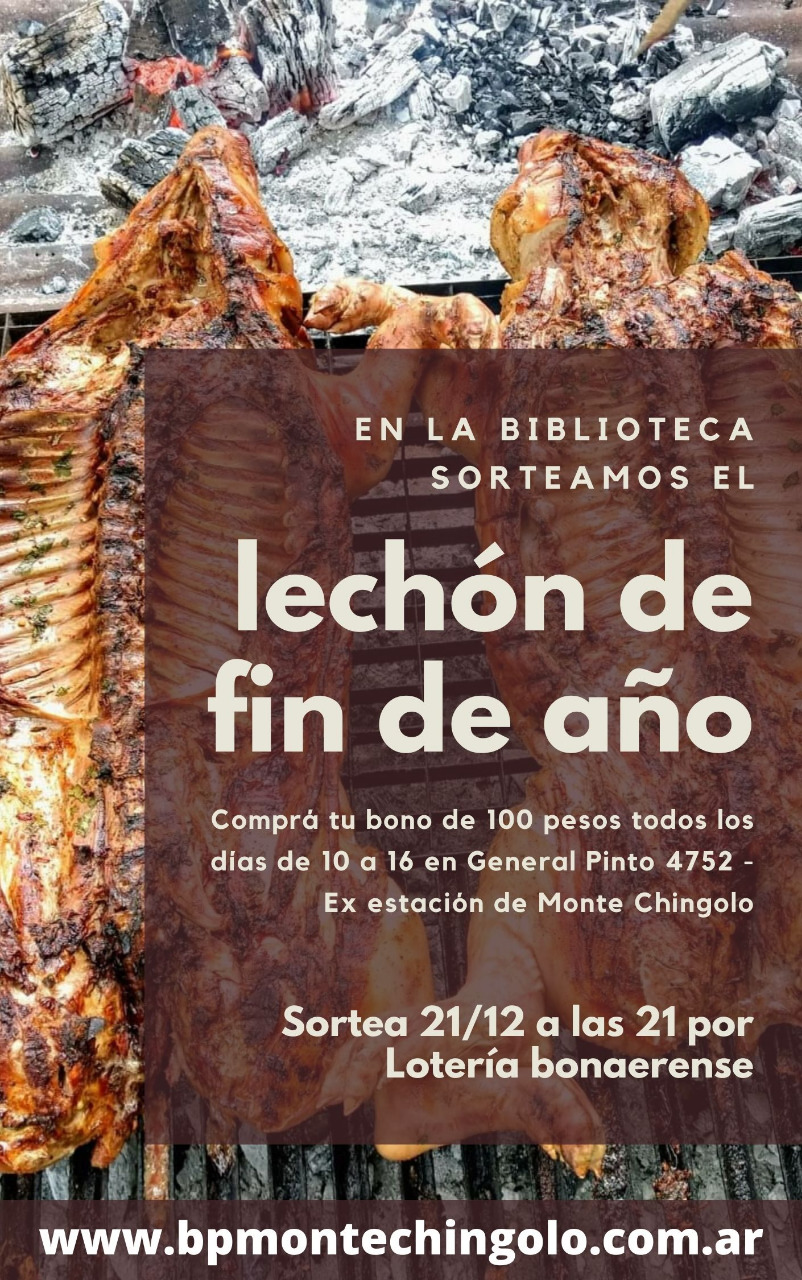 La Biblioteca Popular Monte Chingolo convoca a todos los vecinos a participar el sábado 21 de Diciembre del sorteo del “Lechón de Fin de Año” a través de la compra de un bono de 100 pesos cuya recaudación será destinada a reemplazar parte de los elementos que fueron robados el pasado viernes 6, a sostener las actividades cotidianas de la institución y a seguir construyendo oportunidades educativas y culturales para todos los pibes del barrio.