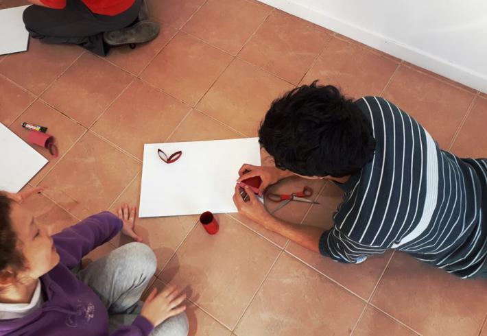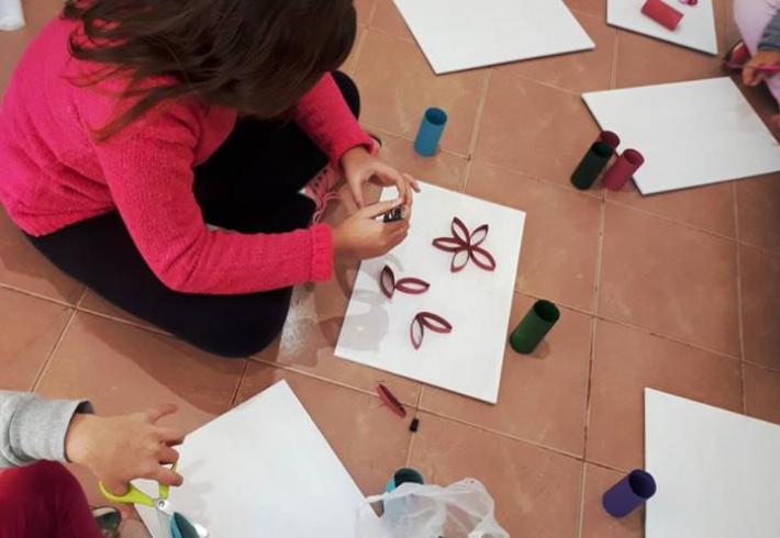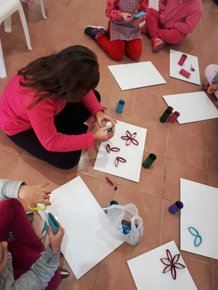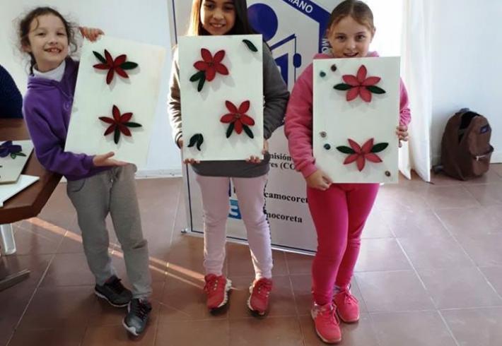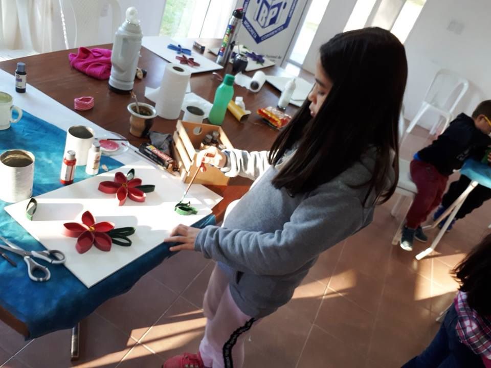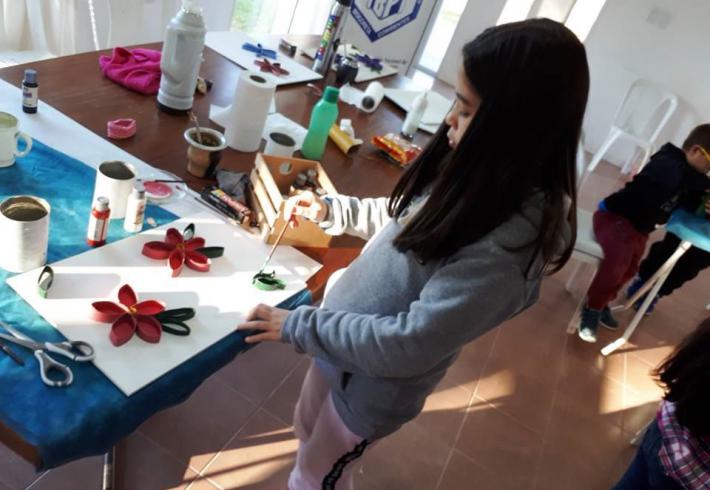 Tratando siempre de incentivar la creatividad, se realizó un taller dónde los chicos armaron un cuadro con flores de papel higiénico.