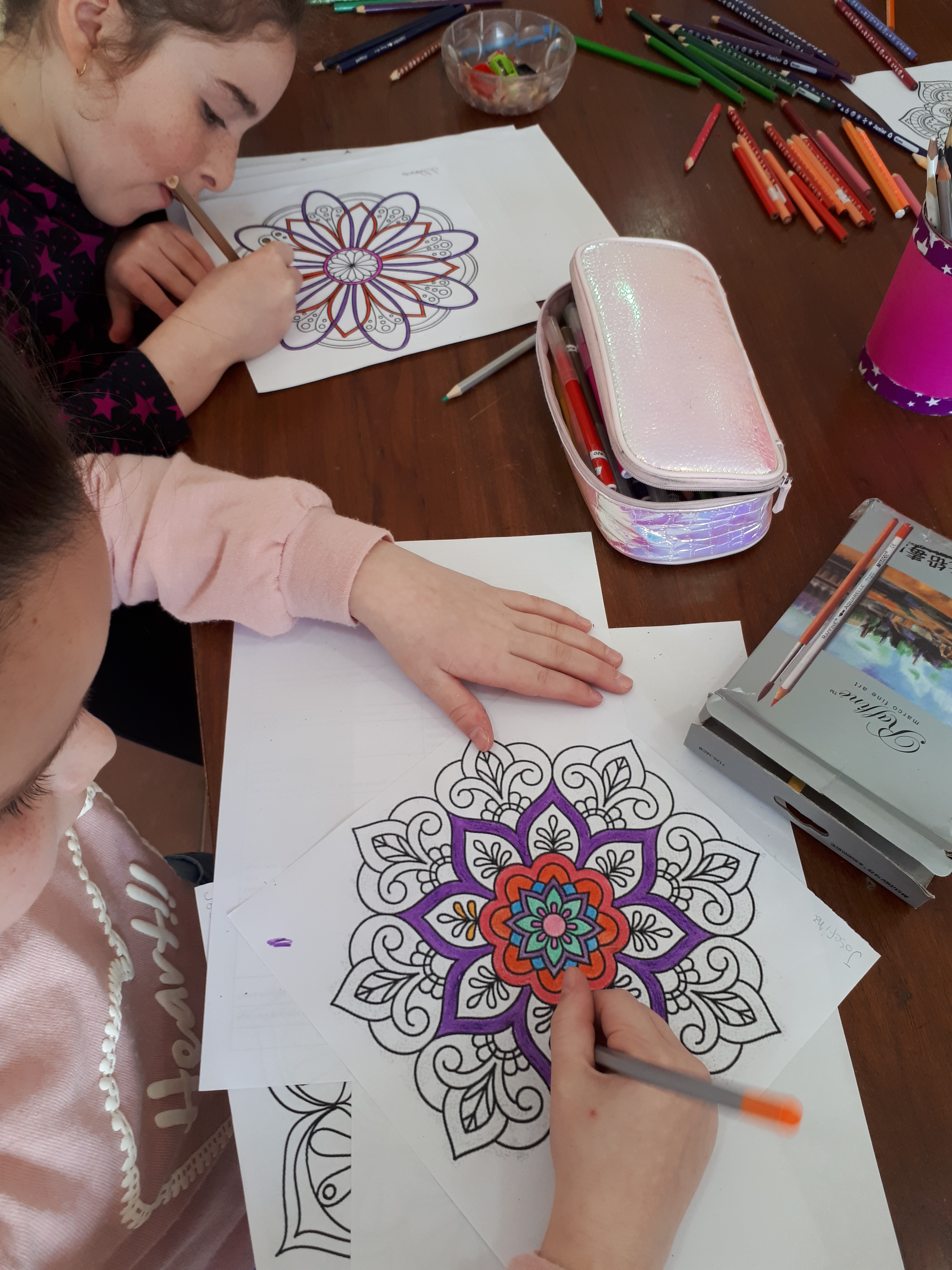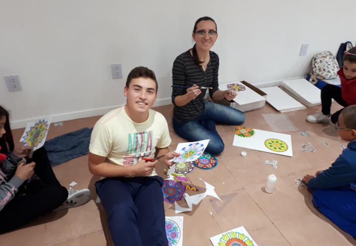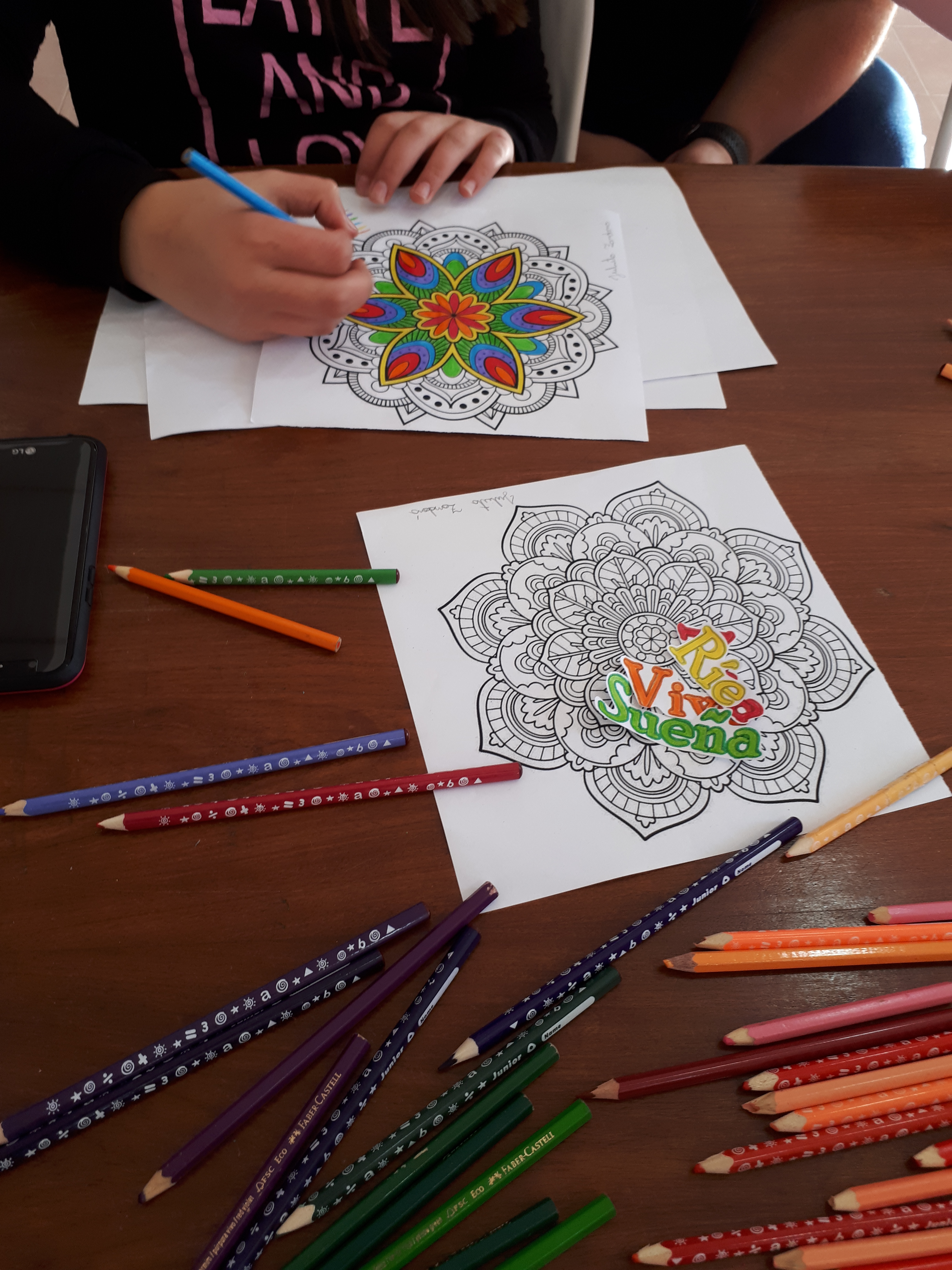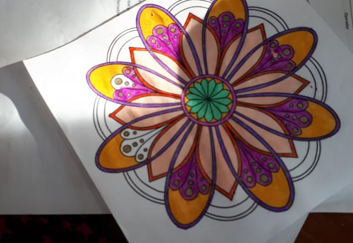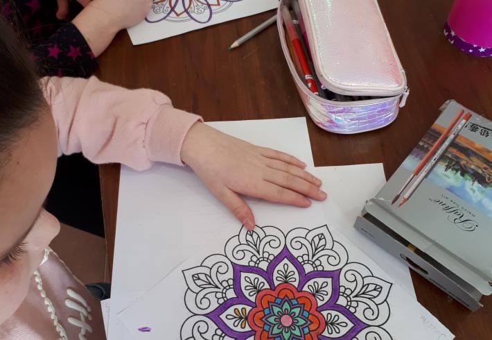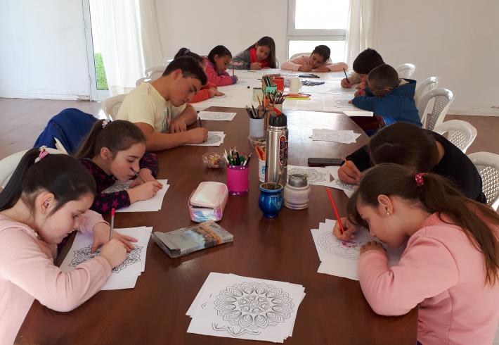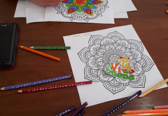 Pintar Mandalas en la biblioteca se volvió una costumbre de la cual los chicos disfrutan mucho hacer.