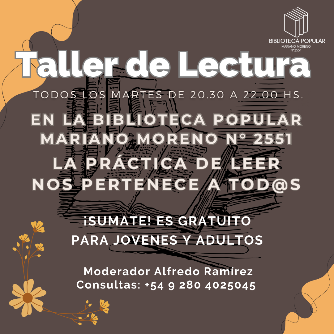 En el mes de las Bibliotecas Populares comienza este Taller de Lectura, es una invitación a conversar con las obras, a descubrirnos constructores y partícipes de los sentidos, a vivir la literatura. Los textos literarios nos brindan la oportunidad de encontrarles múltiples sentidos. Es por eso que podemos conmovernos al identificarnos o al evocar lo conocido, podemos sentirnos desafiados por las propuestas de juego de las autoras y los autores, podemos preguntarnos y preguntar por cada una de las palabras que los conforman, podemos expresarnos y compartir…