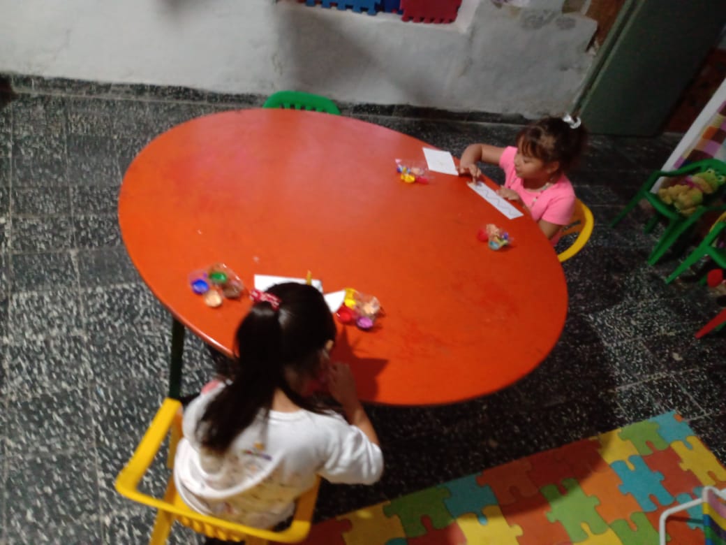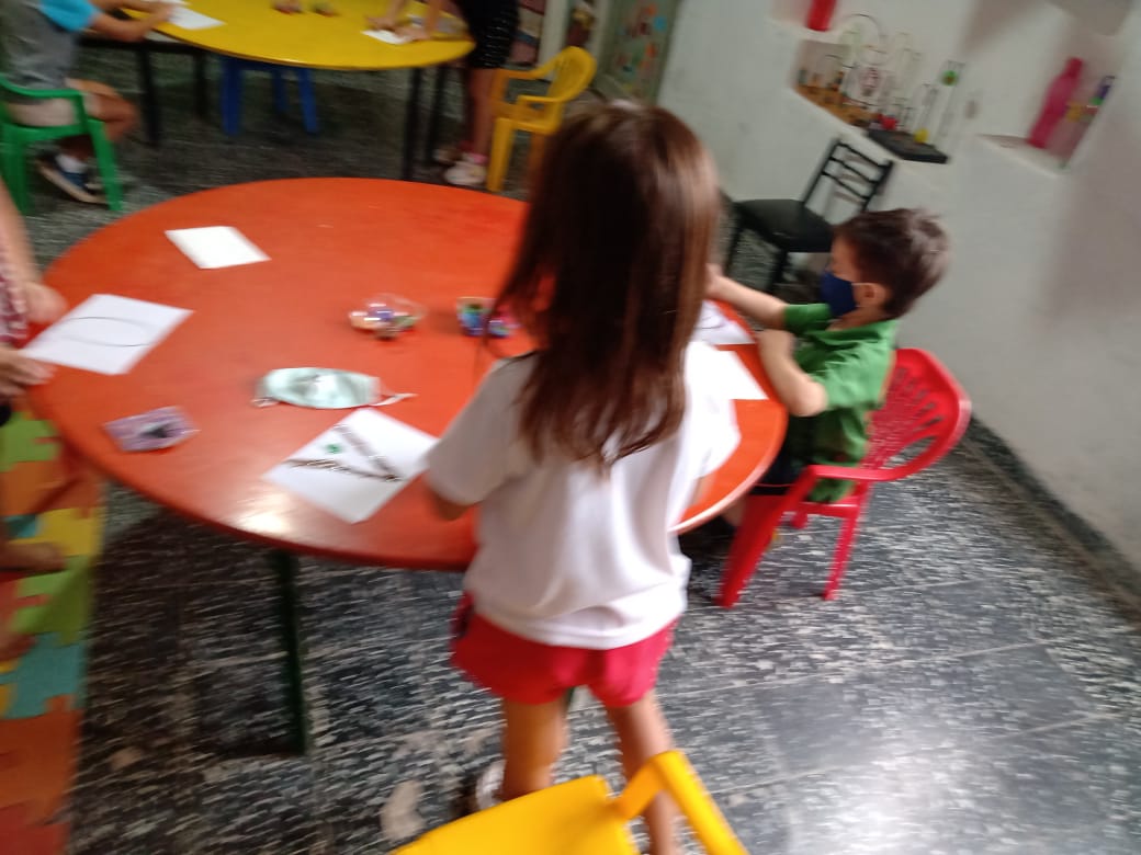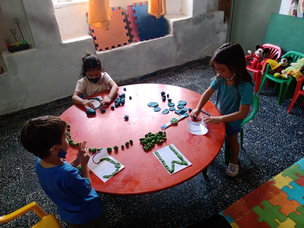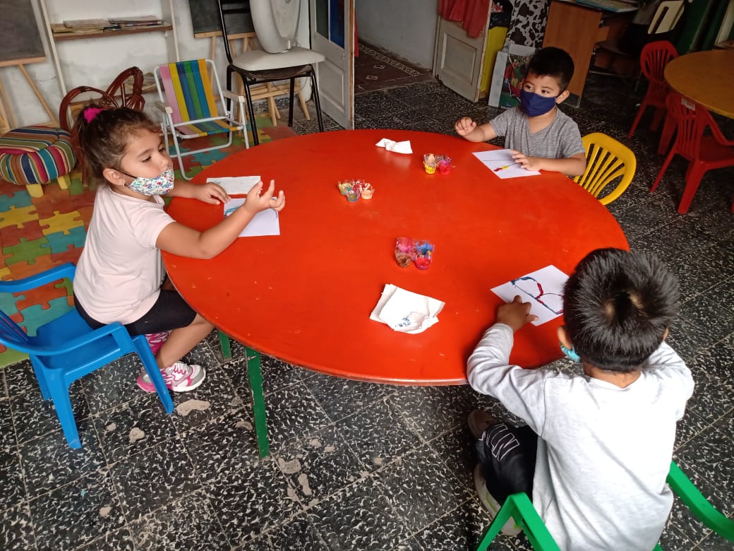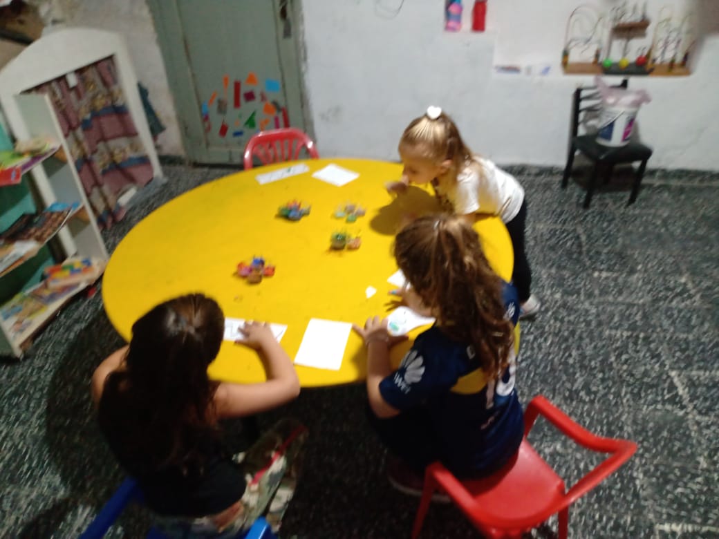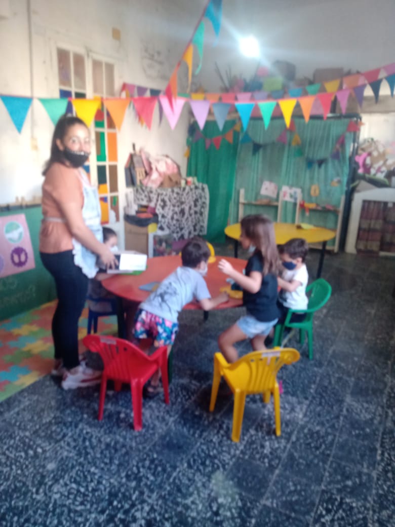 Mas de 20 niños en grupos recucidos y horarios distintos se encuentran tres veces por semana una hora, se reunen en la sala de la juegoteca los niños a cargo de la Tallerista Milagros Deger.