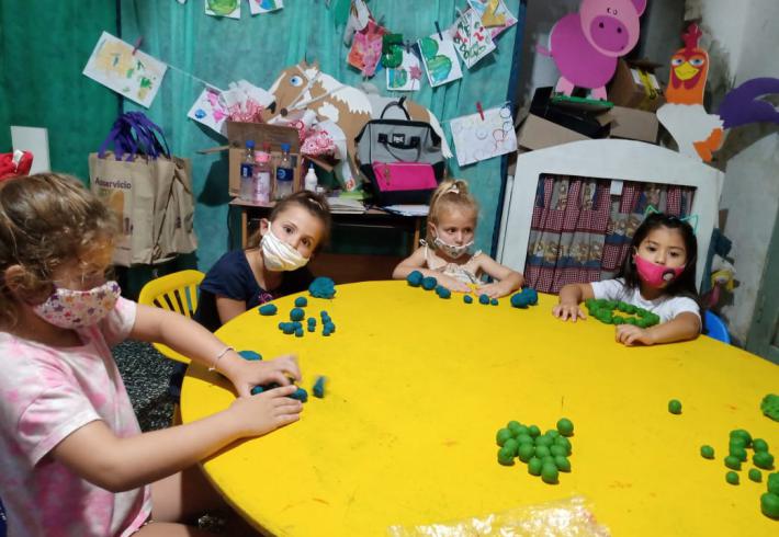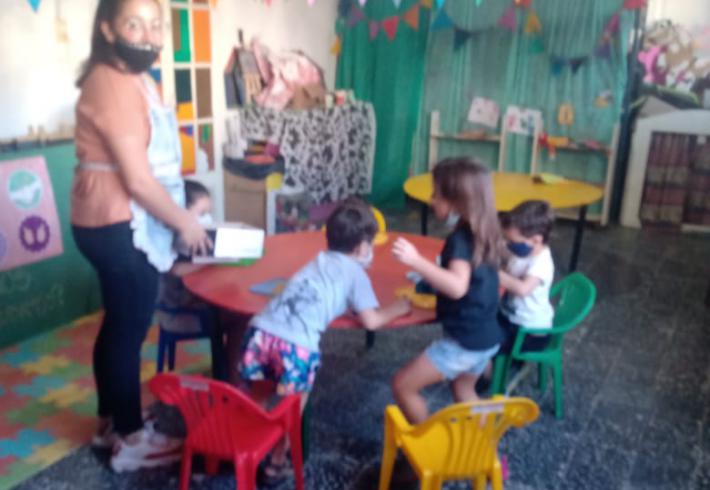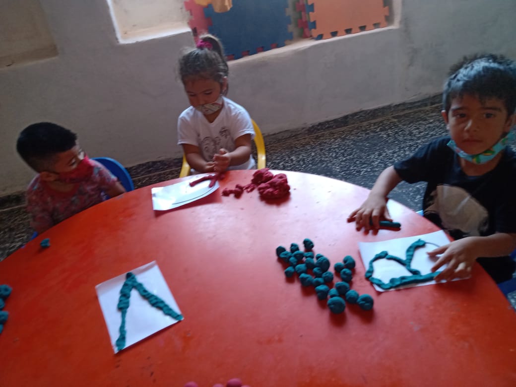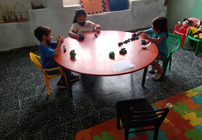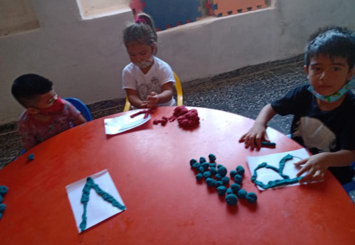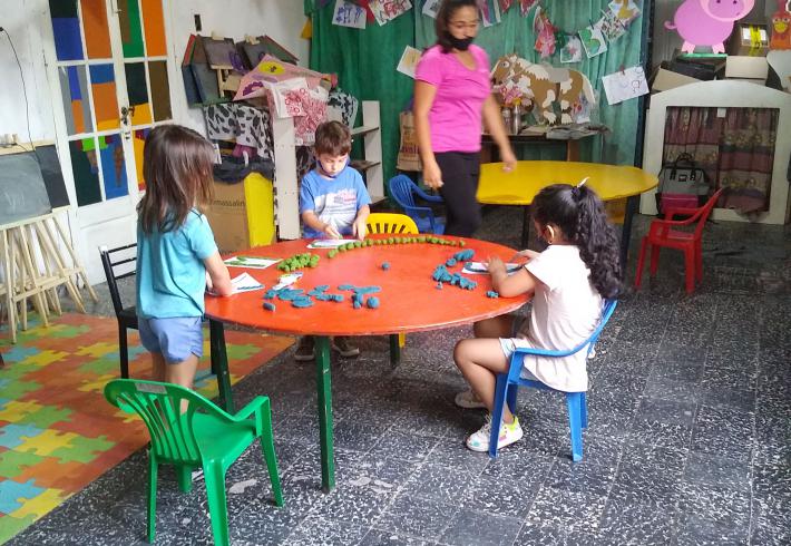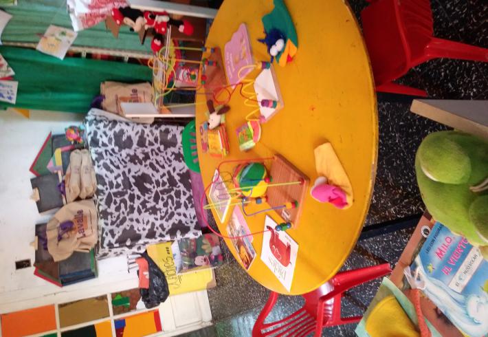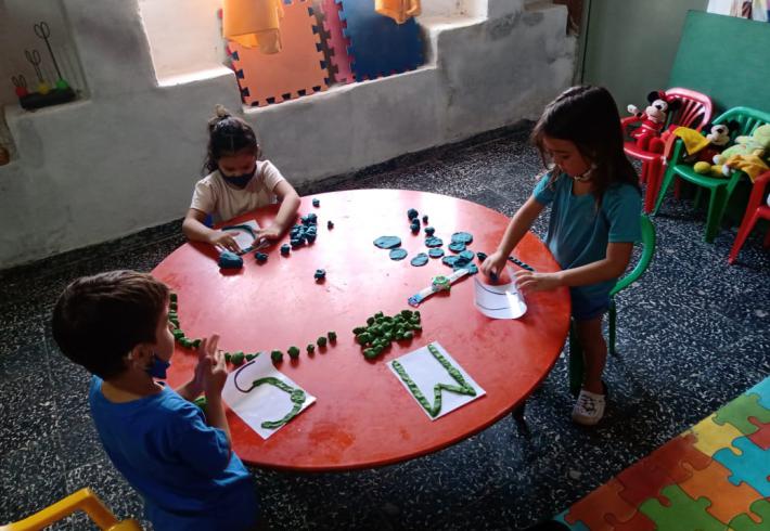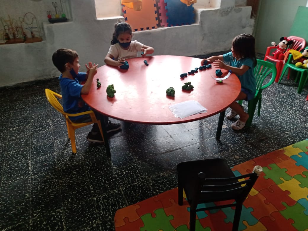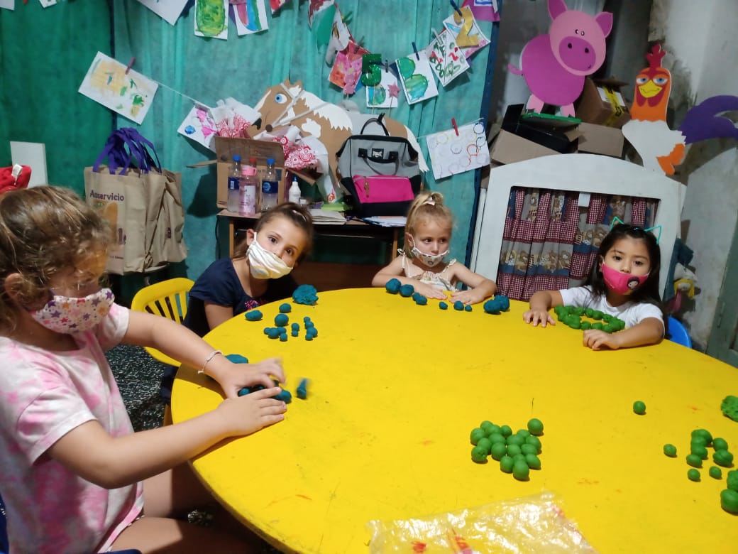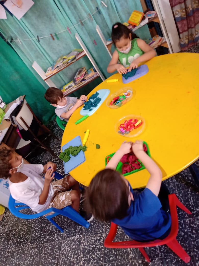 Mas de 20 niños en grupos recucidos y horarios distintos se encuentran tres veces por semana una hora, se reunen en la sala de la juegoteca los niños a cargo de la Tallerista Milagros Deger.