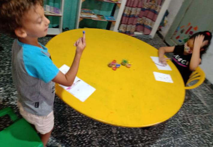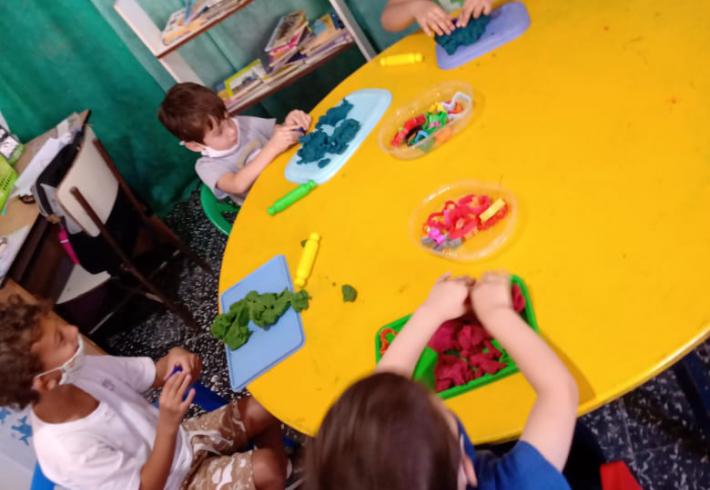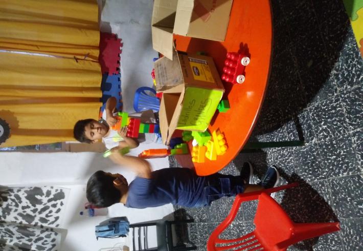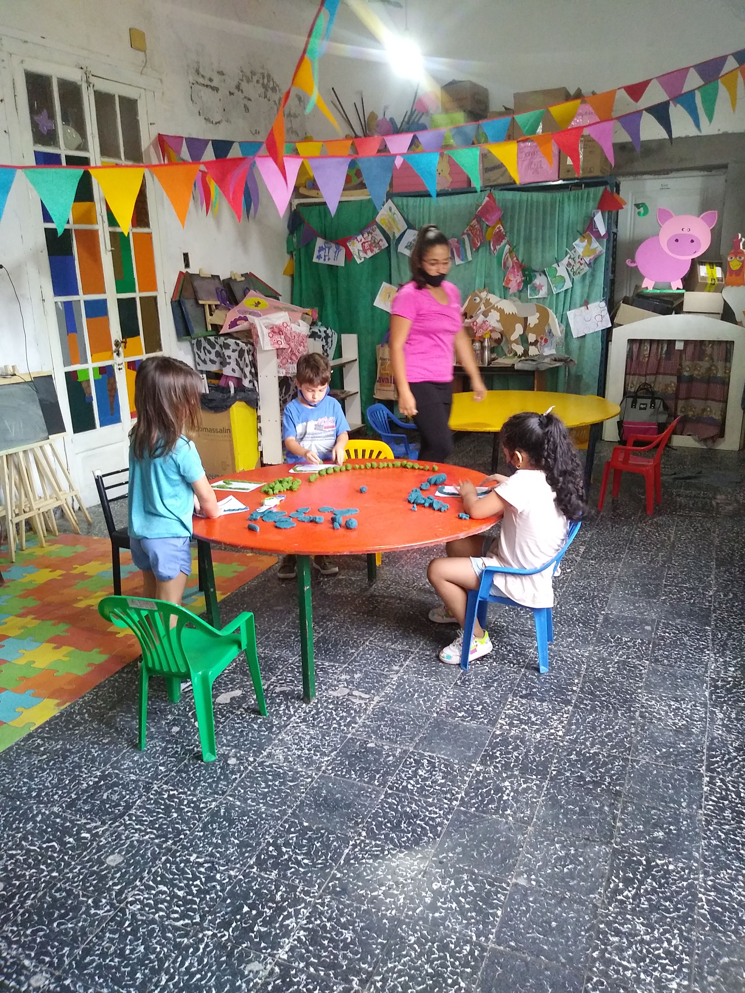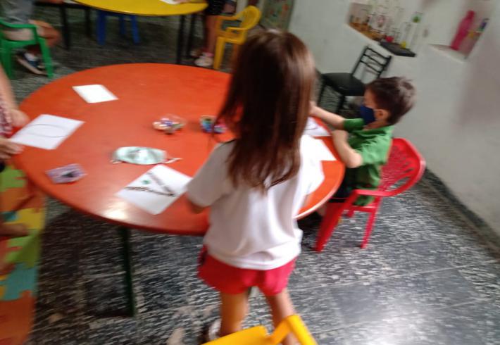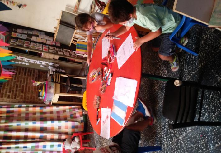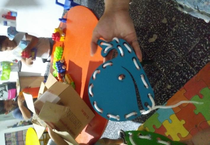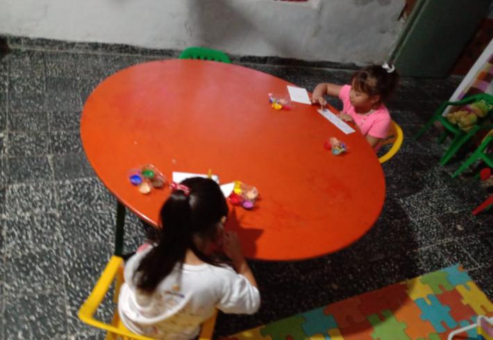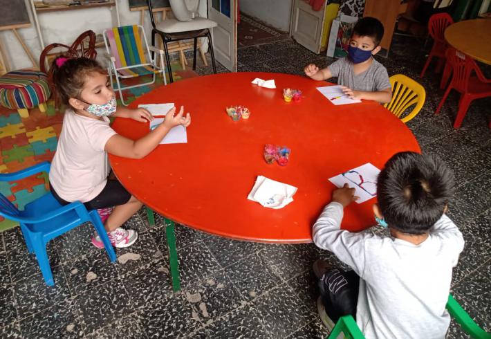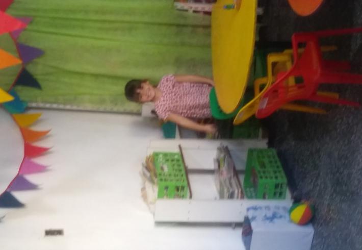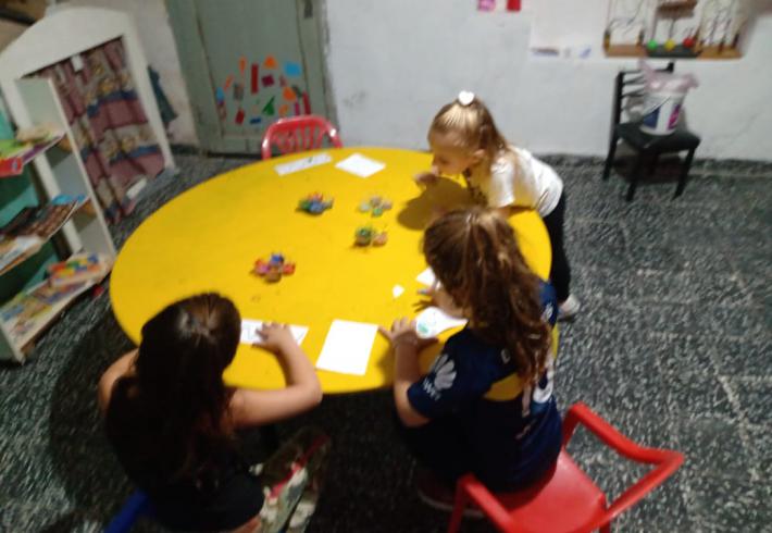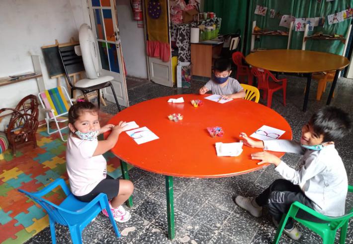 Mas de 20 niños en grupos recucidos y horarios distintos se encuentran tres veces por semana una hora, se reunen en la sala de la juegoteca los niños a cargo de la Tallerista Milagros Deger.