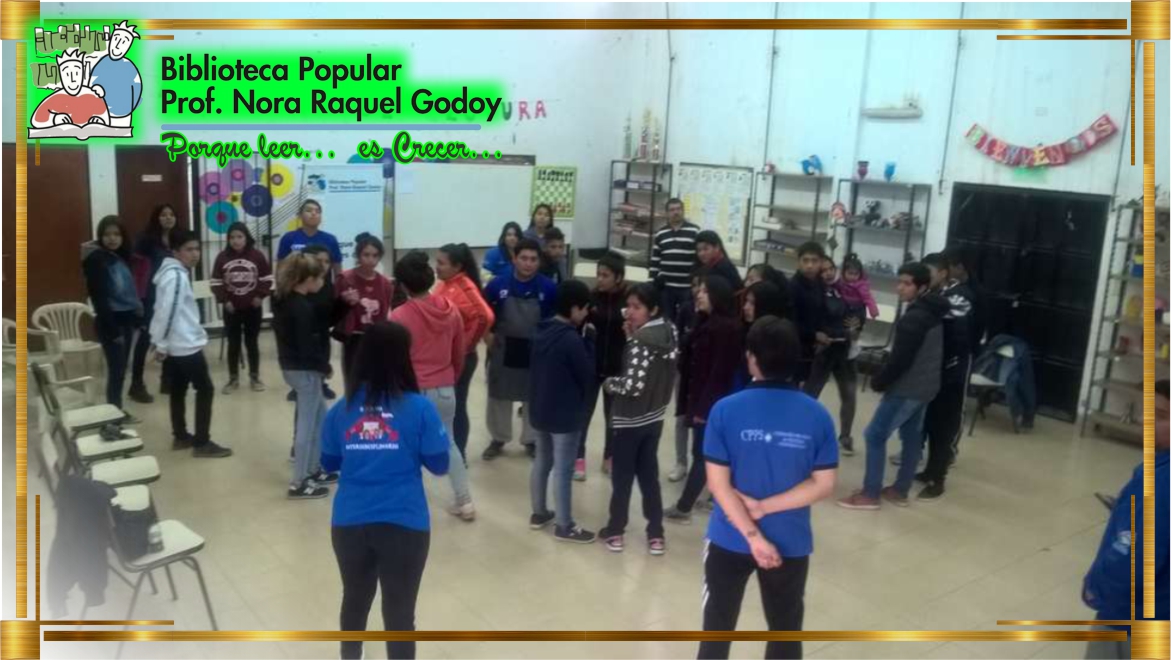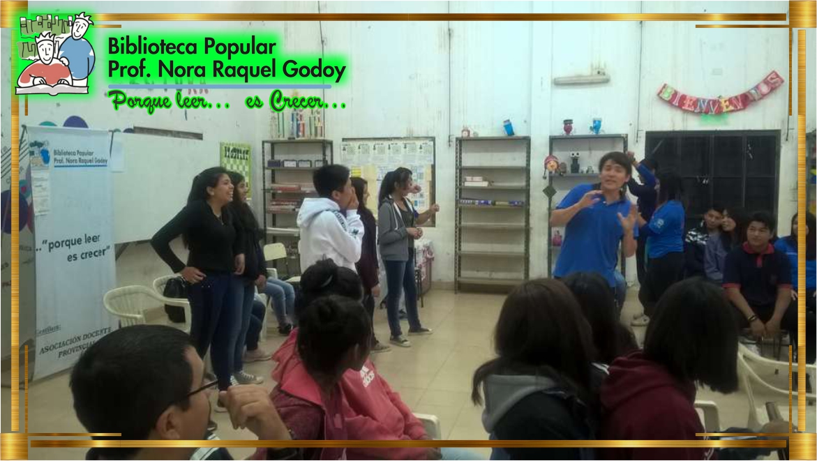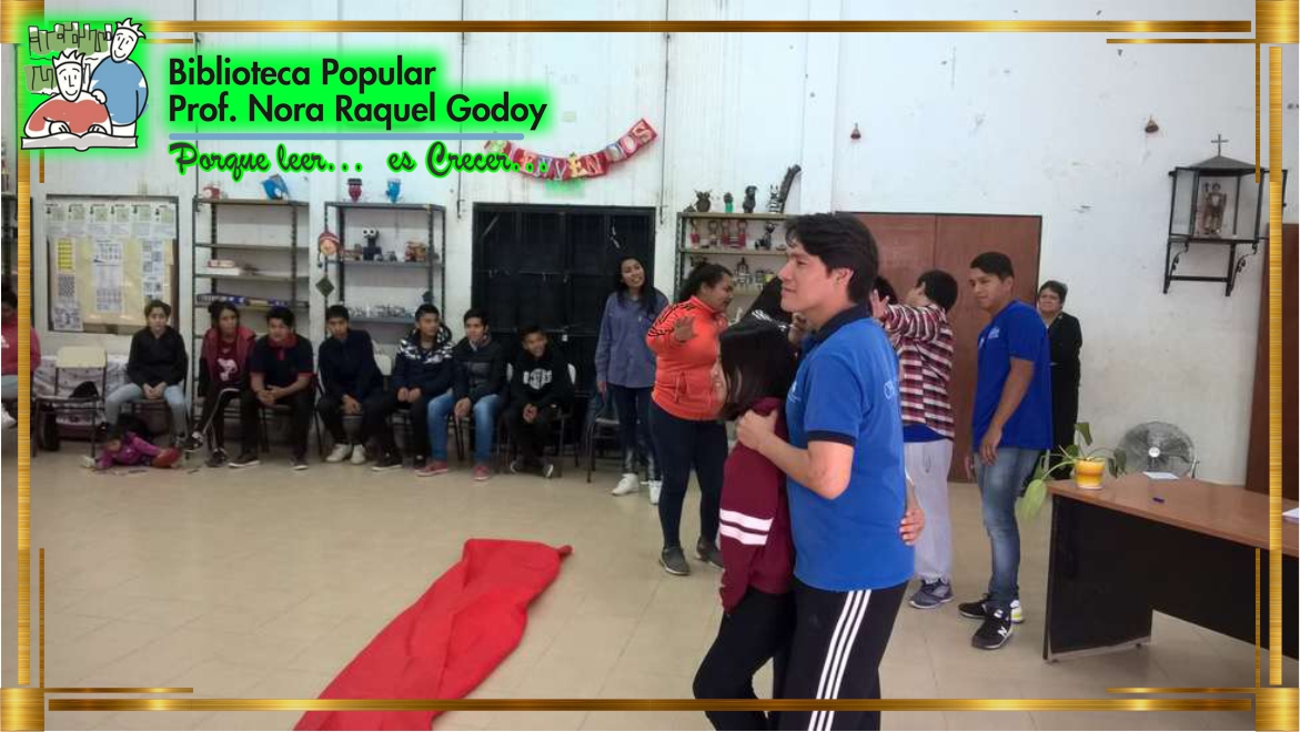CONTINUANDO CON LOS JUEVES CULTURALES EN LA BIBLIOTECA POPULAR "NORA R. GODOY" SE LLEVO A CABO EL TALLER DE TEATRO DEL OPRIMIDO A CARGO DEL PROFESOR LEONARDO PILILI, CON LA PARTICIPACIÓN DE LOS JOVENES DEL TERCER AÑO DEL COLEGIO "FE Y ALEGRÍA" LOS CUALES DEMOSTRARON UN GRAN INTERES YA QUE FUERON CAUTIVADOS POR LA EXCELENTE TRANSFERENCIA POR PARTE DEL PROFESOR Y COLABORADORES.-