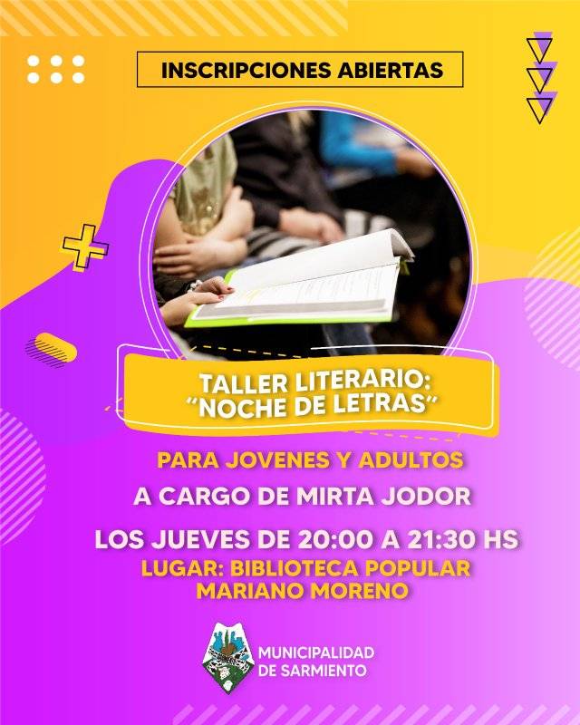 "Noche de Letras" a cargo de Mirta Graciela Jodor en Colaboración con la Municipalidad de Sarmiento y Biblioteca