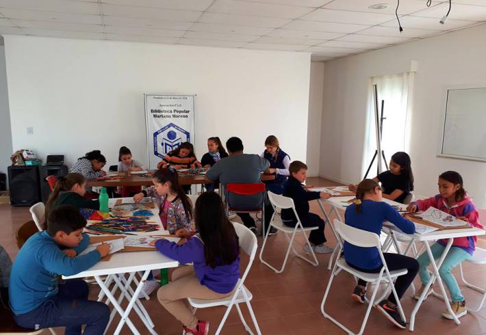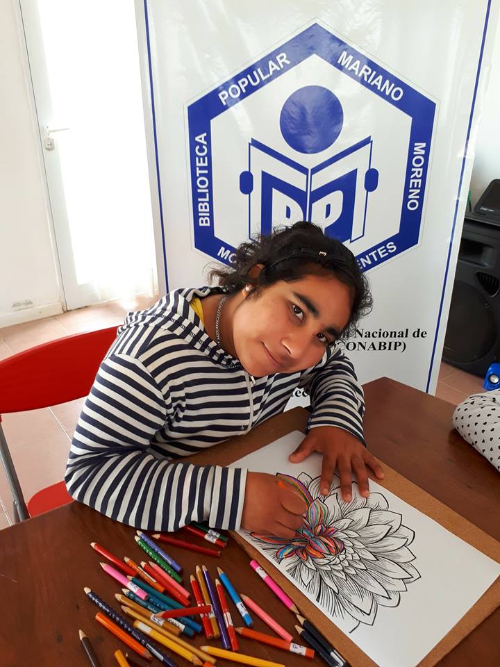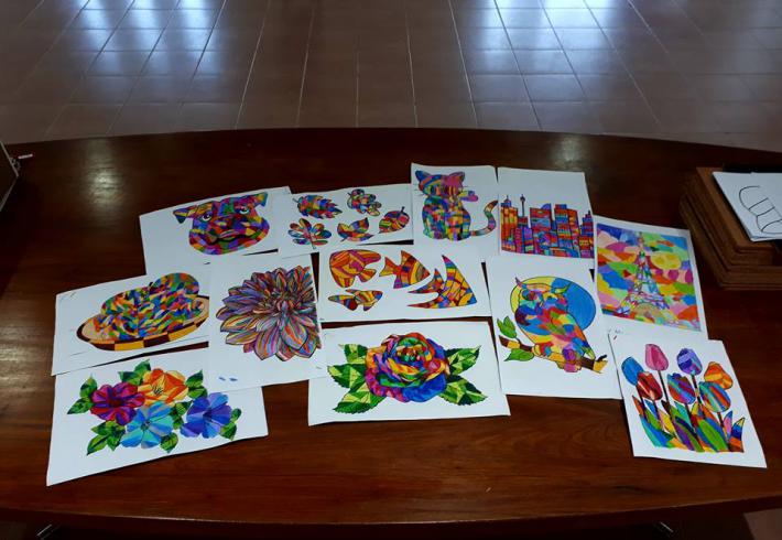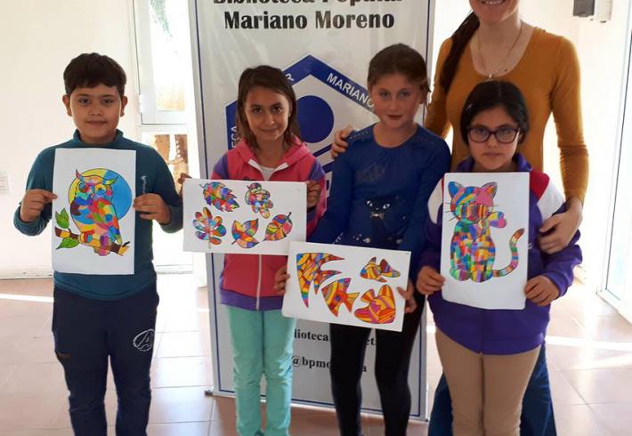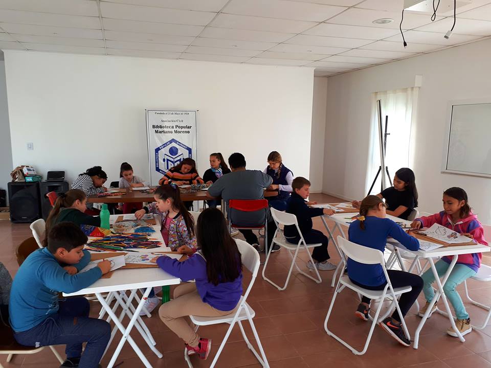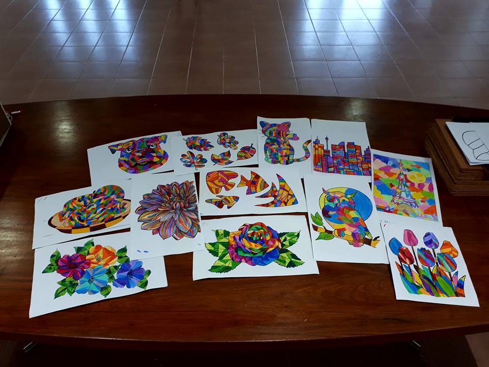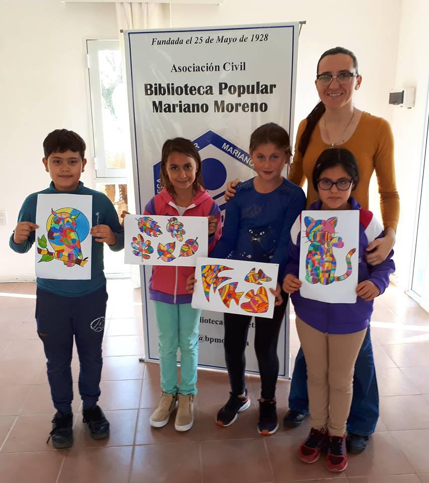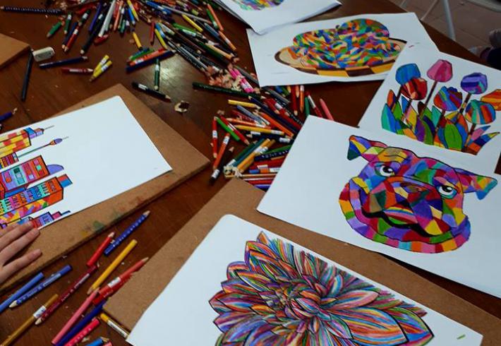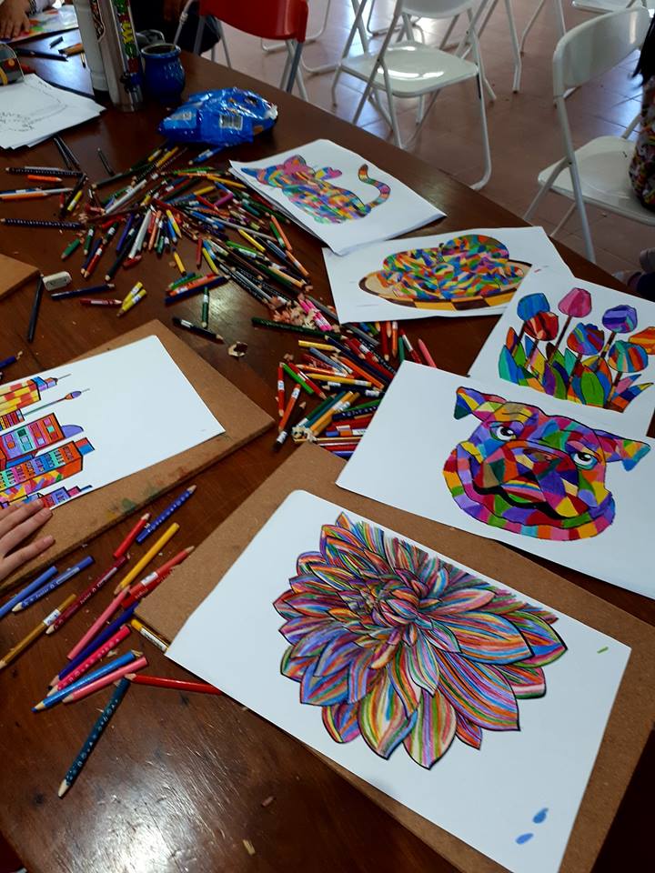 Se realizó un taller para chicos de 8 a 12 años, donde pudieron colorear con lápices de colores, logrando una similitud a la técnica mosaiquismo. La ide era que pinten con muchos colores, sin importar el color real de los dibujos.