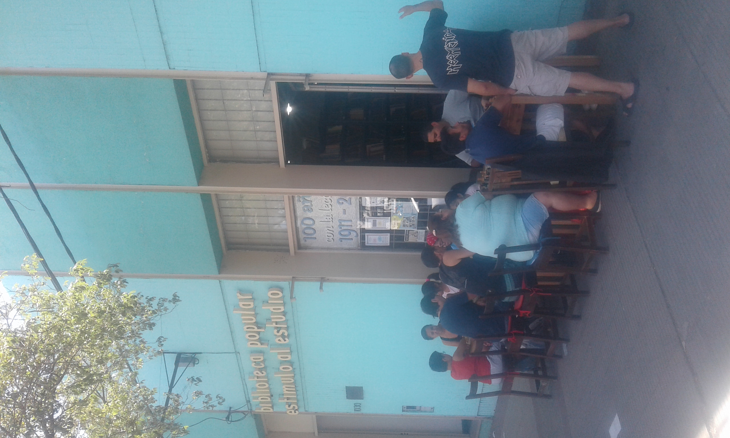 taller de ajedrez en la vereda de la biblioteca, sabados por la mañana