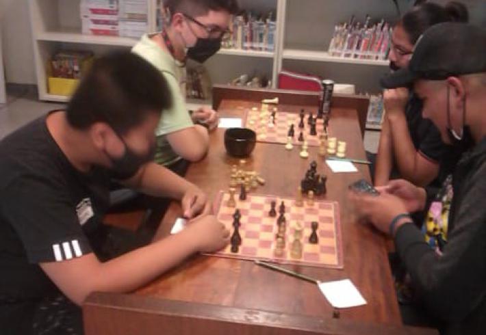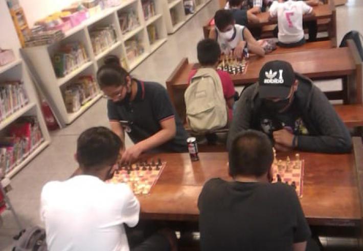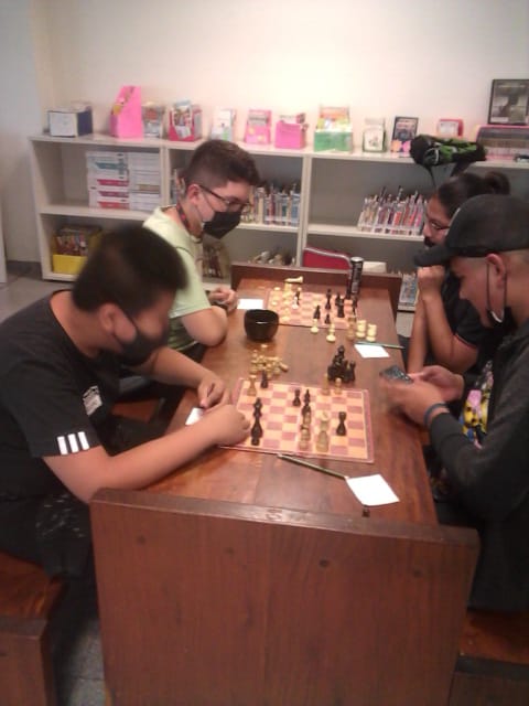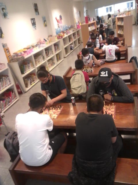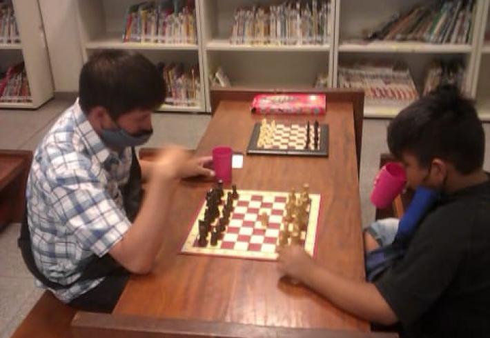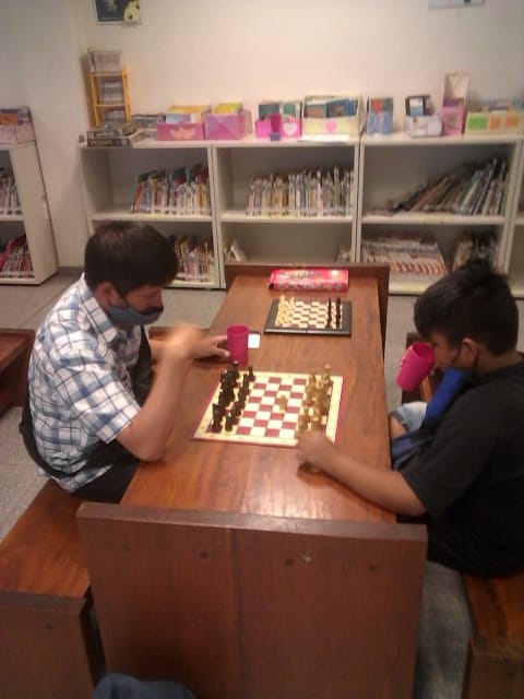 Torneo de ajedrez y confraternizacion en la Biblioteca Provincial Victorino de la Plaza. Entre las actividades del Proyecto :"El Tablero del Juego ... y el Saber"