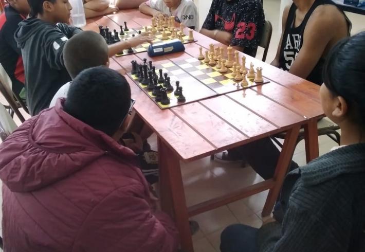 Trebejistas en accion.Taller de ajedrez a cargo de Nahuel