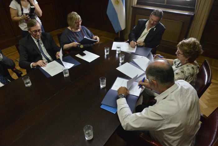 Para la firma del acuerdo estuvieron presentes en el Centro Cultural Kirchner, el Ministro de Cultura, Tristán Bauer, la presidenta de la Conabip, María del Carmen Bianchi, María Teresa Carbano, presidenta de la Fundación el Libro, Martín Gremmelspache, presidente de Cámara Argentina del Libro y Rodolfo Reyna, presidente de la Cámara argentina de Publicaciones. Asistieron también el Director de la Biblioteca Nacional, Juan Sasturain, la titular del Plan Nacional de Lectura, Natalia Porta López y Alejandro Vaccaro, presidente de la Sociedad Argentina de Escritores.