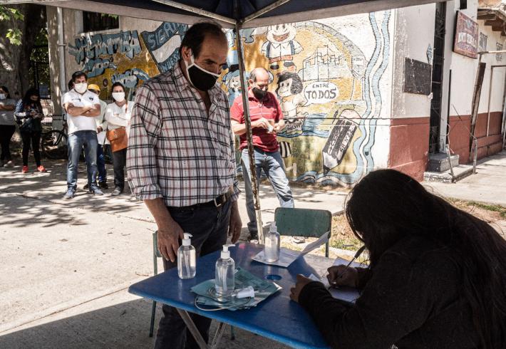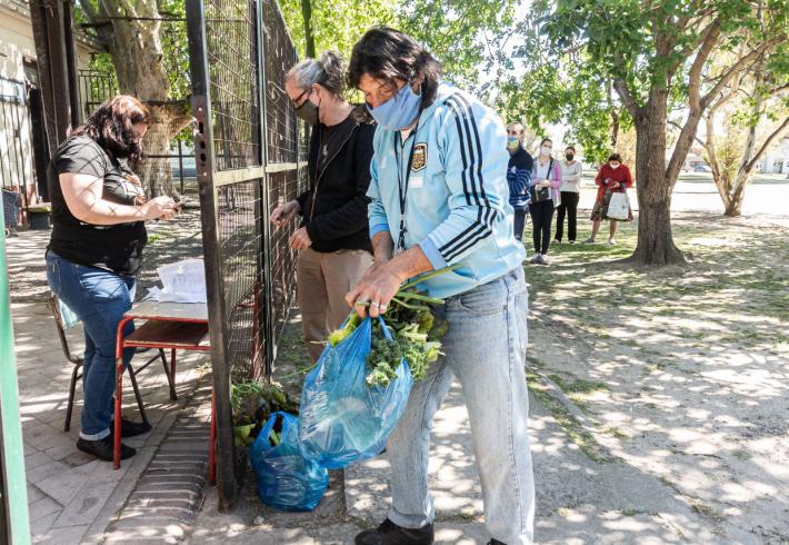 Las familias habían reservado con anterioridad por correo electrónico los bolsones de verdura que los quinteros de la UTT habían preparado en sus fincas de la periferia de La Plata, y durante la mañana del sábado se pudieron acercar a la Biblioteca en horarios pautados y formando fila con posiciones marcadas en el piso para respetar el distanciamiento social.