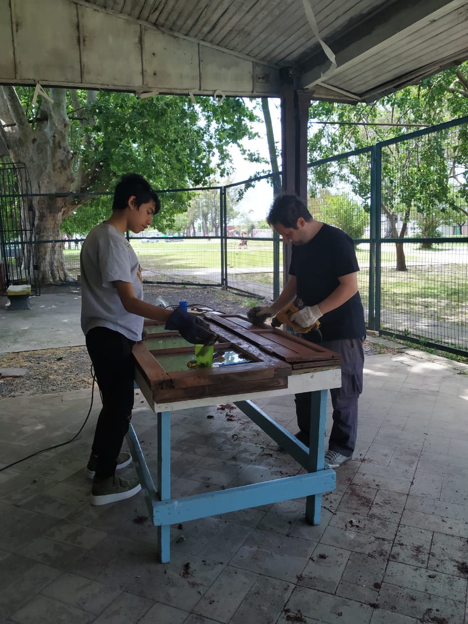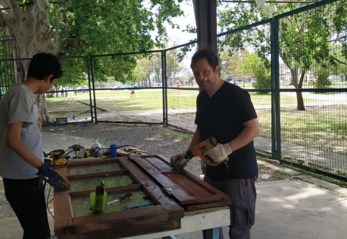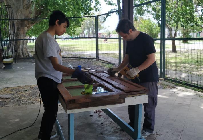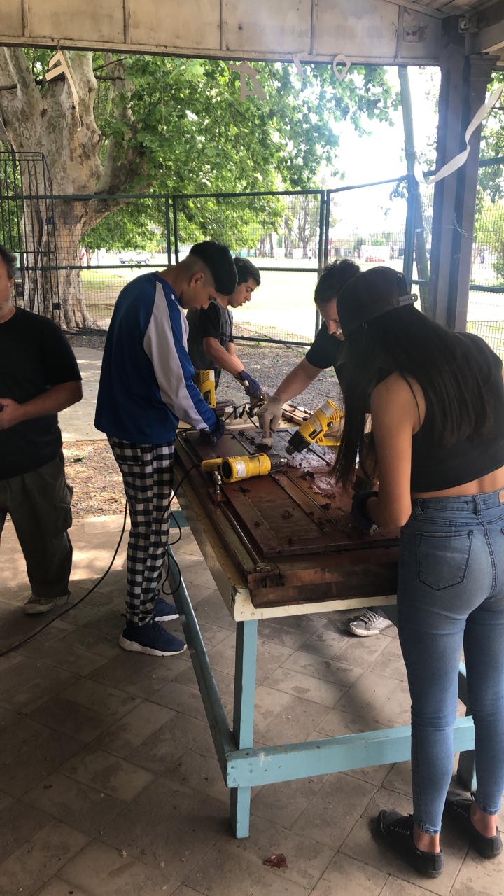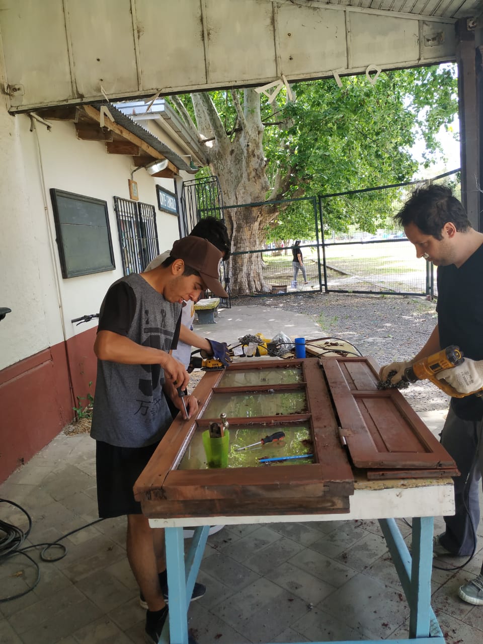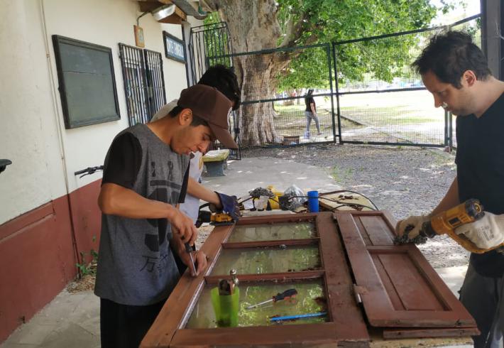 Estudiantes de la Secundaria 36 de Monte Chingolo que desarrollan un proyecto de Huerta en la Biblioteca también se sumaron a las tareas de refacción y restauración del edificio histórico.