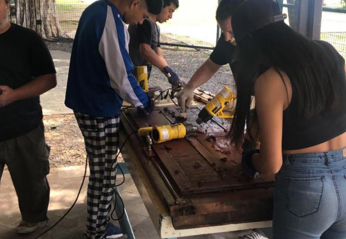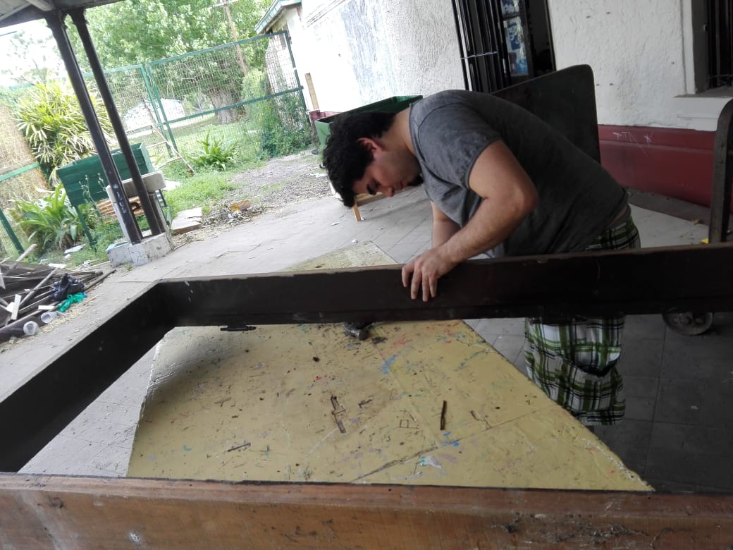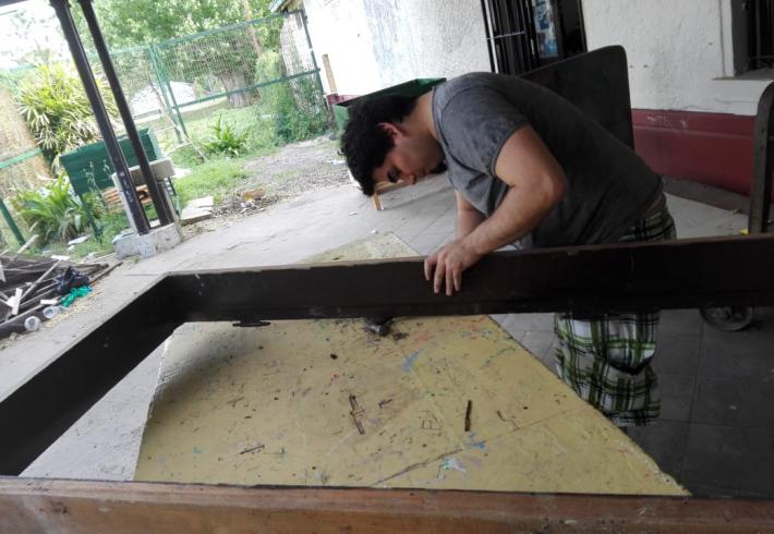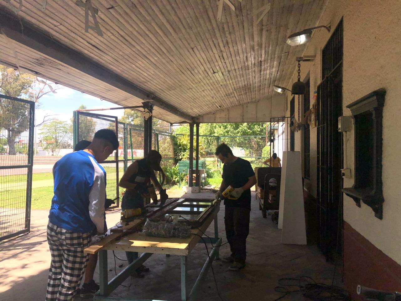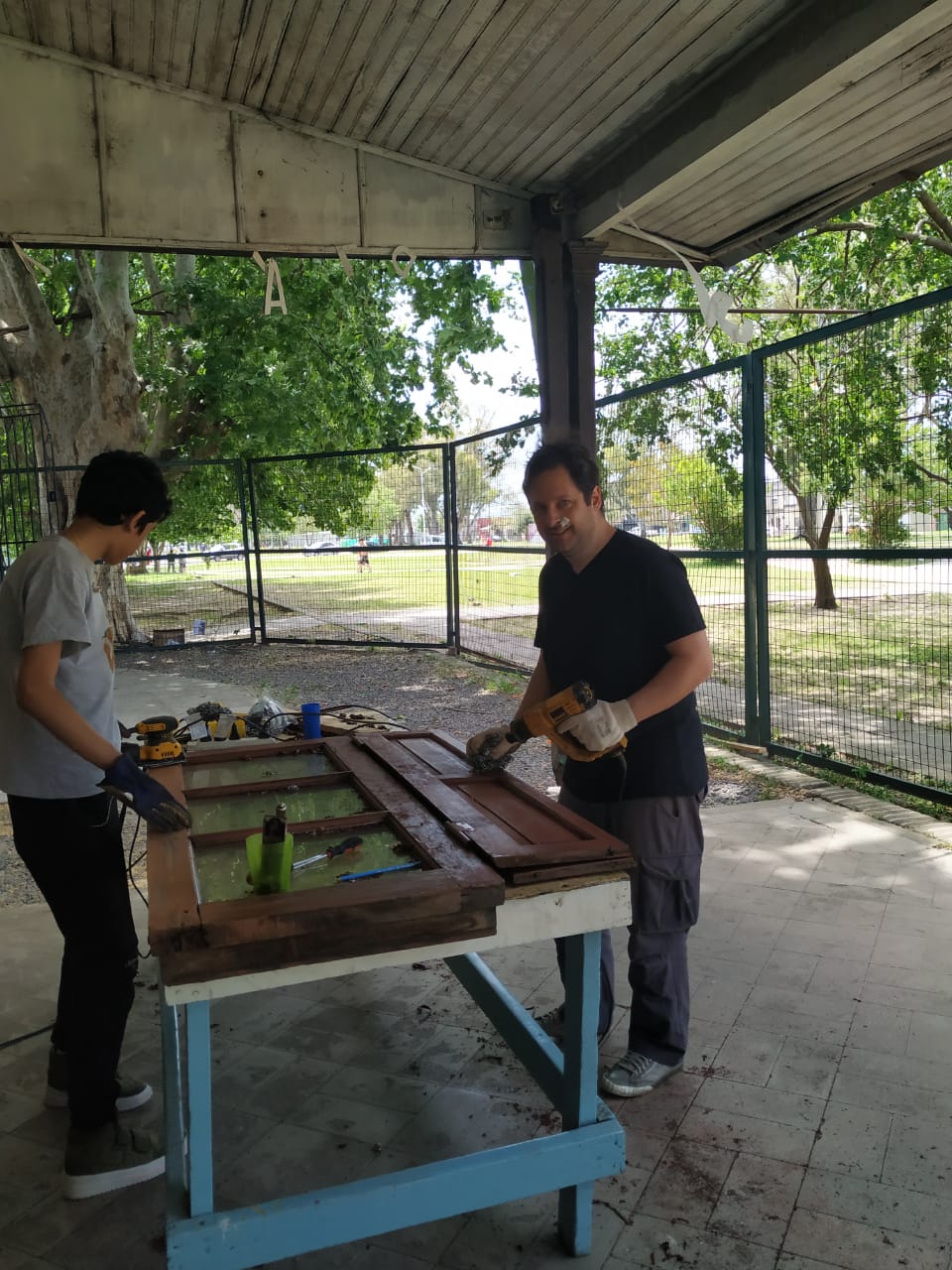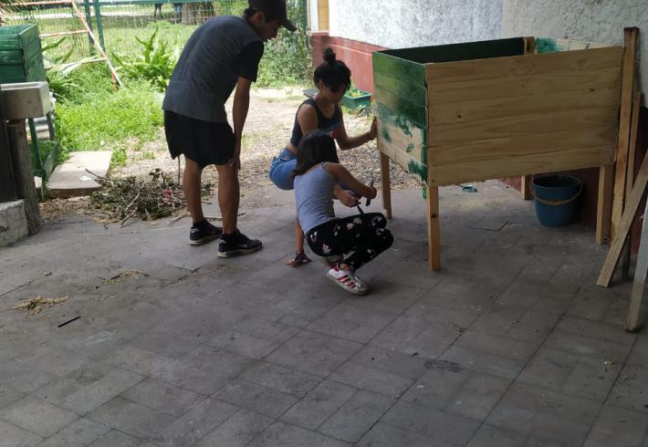 Estudiantes de la Secundaria 36 de Monte Chingolo que desarrollan un proyecto de Huerta en la Biblioteca también se sumaron a las tareas de refacción y restauración del edificio histórico.