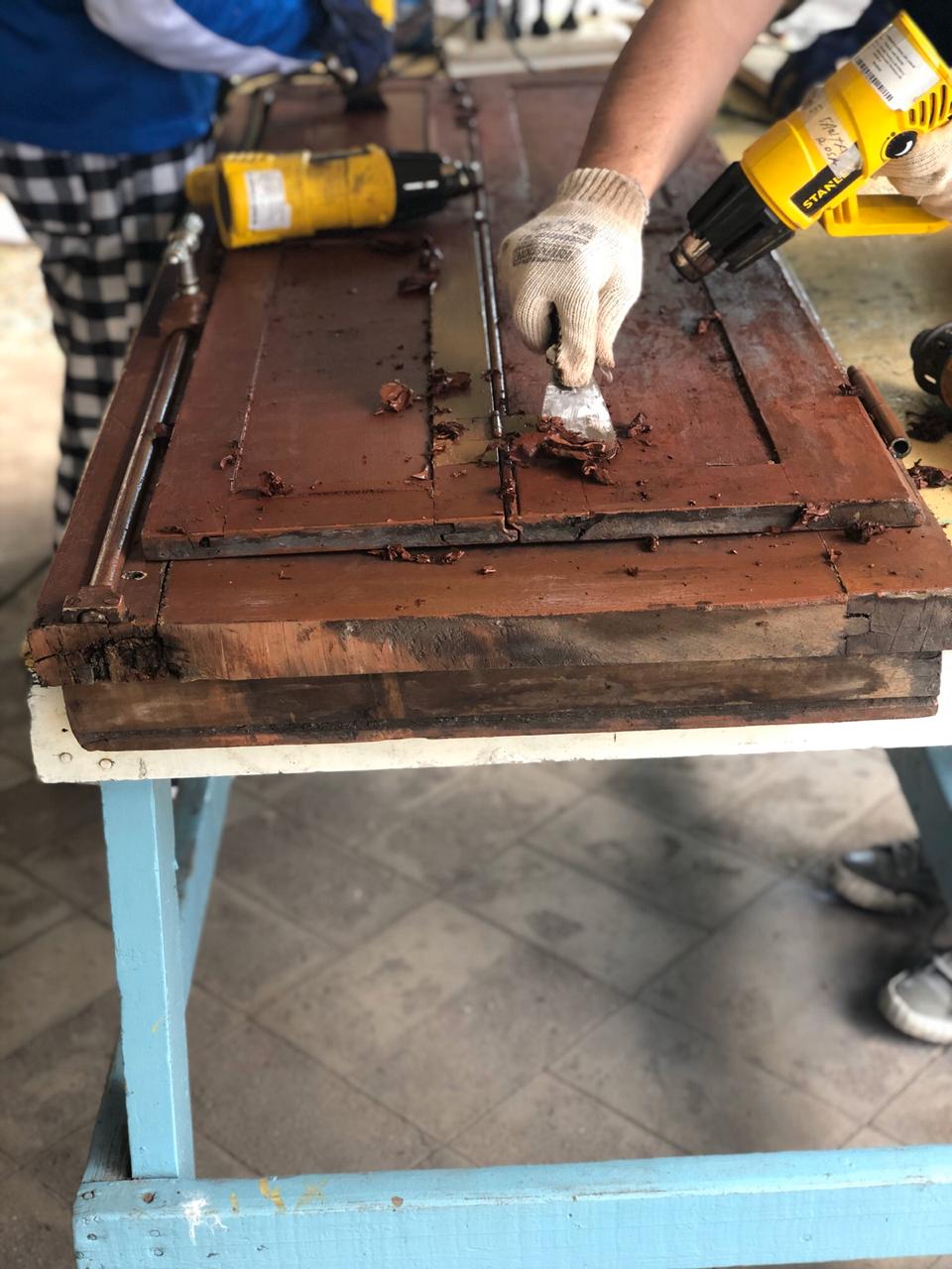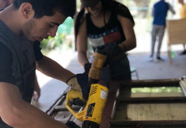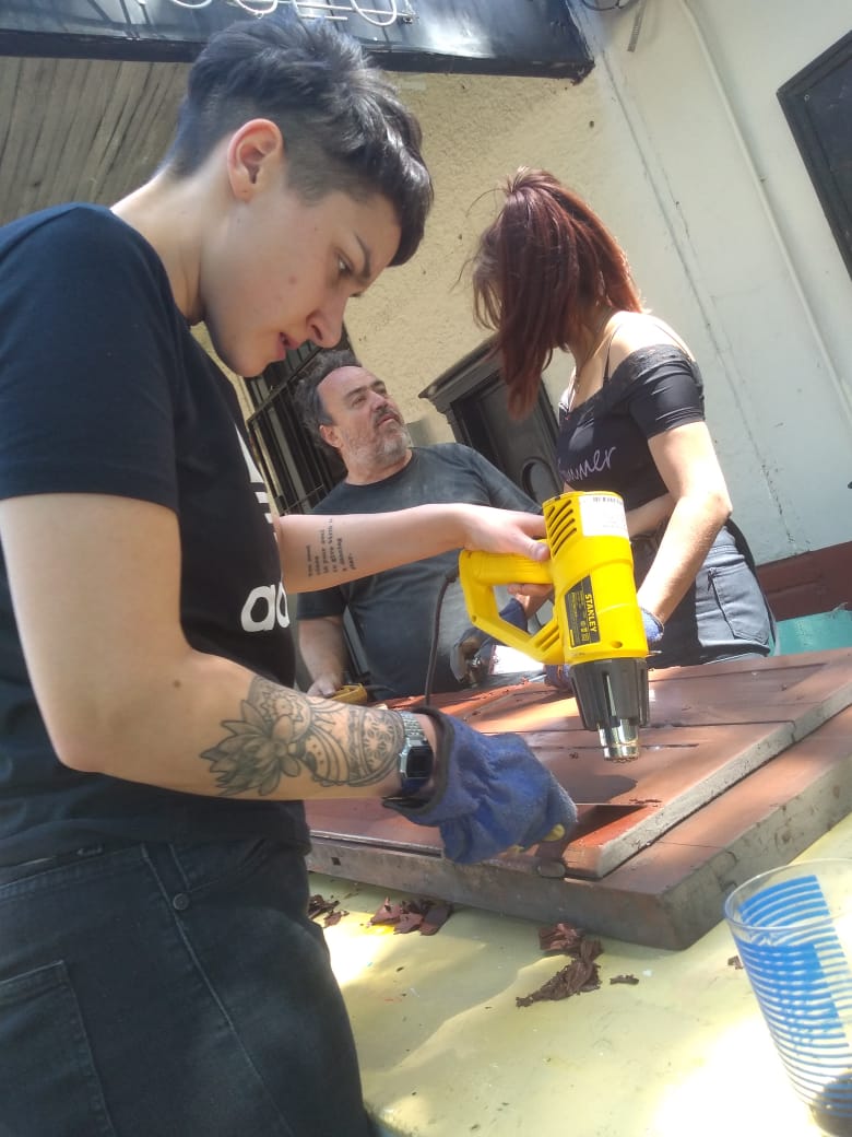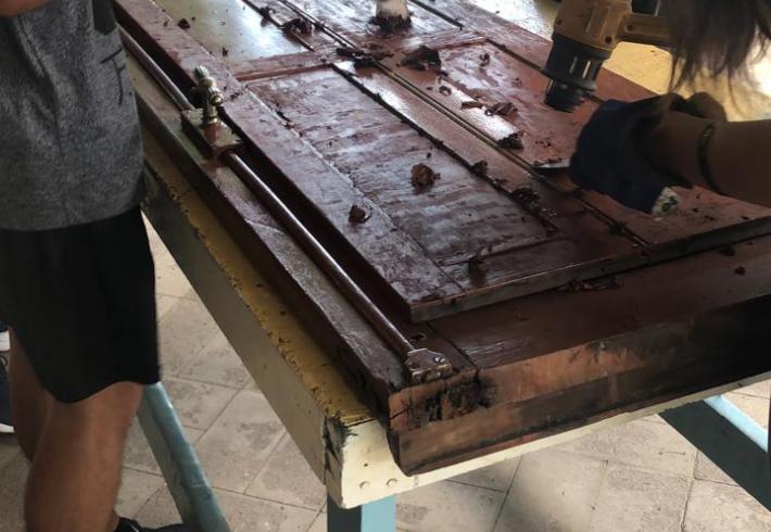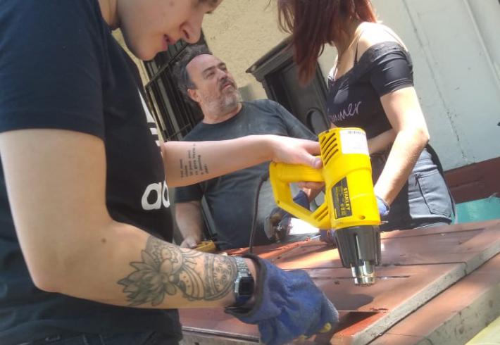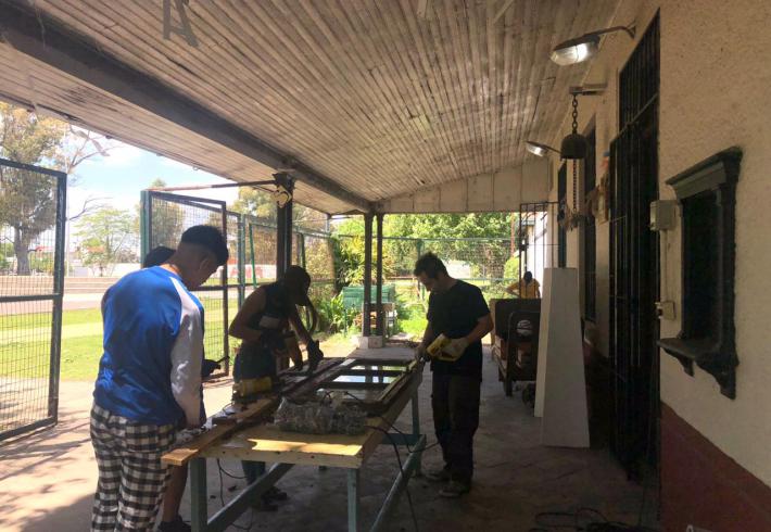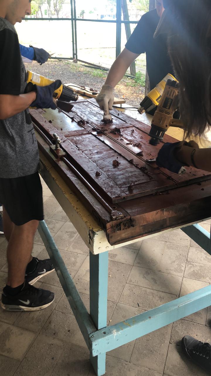 Estudiantes de la Secundaria 36 de Monte Chingolo que desarrollan un proyecto de Huerta en la Biblioteca también se sumaron a las tareas de refacción y restauración del edificio histórico.