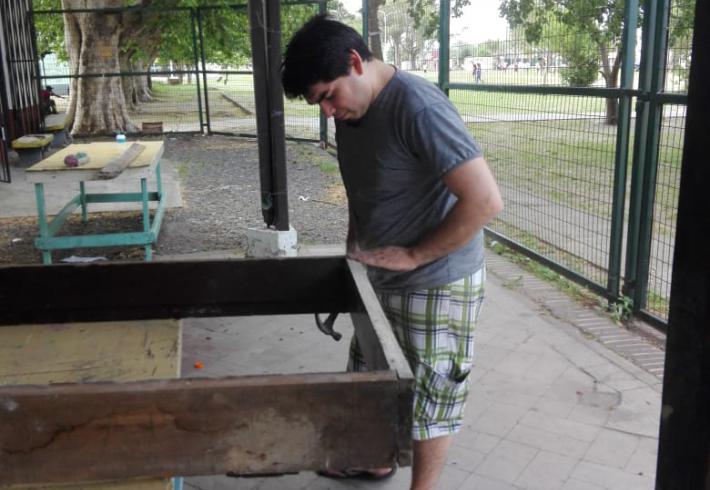 Vecinos y socios de la Biblioteca Popular Monte Chingolo participaron este sábado de las tareas de puesta en valor del sector de la antigua estación de Monte Chingolo que estaba destinado a la vivienda del Jefe de Estación, un espacio que pronto se sumará a los que la institución ya abre al servicio de la comunidad.