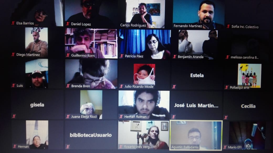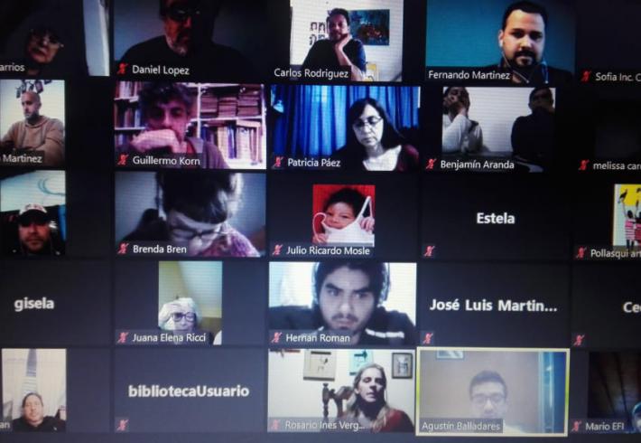 El encuentro organizado a través de la plataforma Zoom contó con la participación del director de Asuntos Políticos de la jefatura de Gabinete de la Nación, Agustín Balladares, y del director de Bibliotecas y Promoción de la Lectura de la Provincia de Buenos Aires, Guillemo Korn.