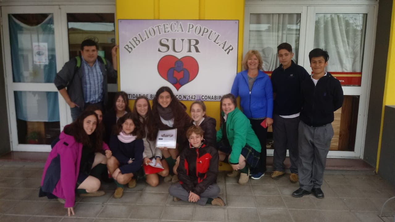Un grupo de alumnos acompañados por una profesora y el bibliotecario del Instituto San Antonio, visitaron la biblioteca, y realizaron una entrevista sobre la historia de la institución