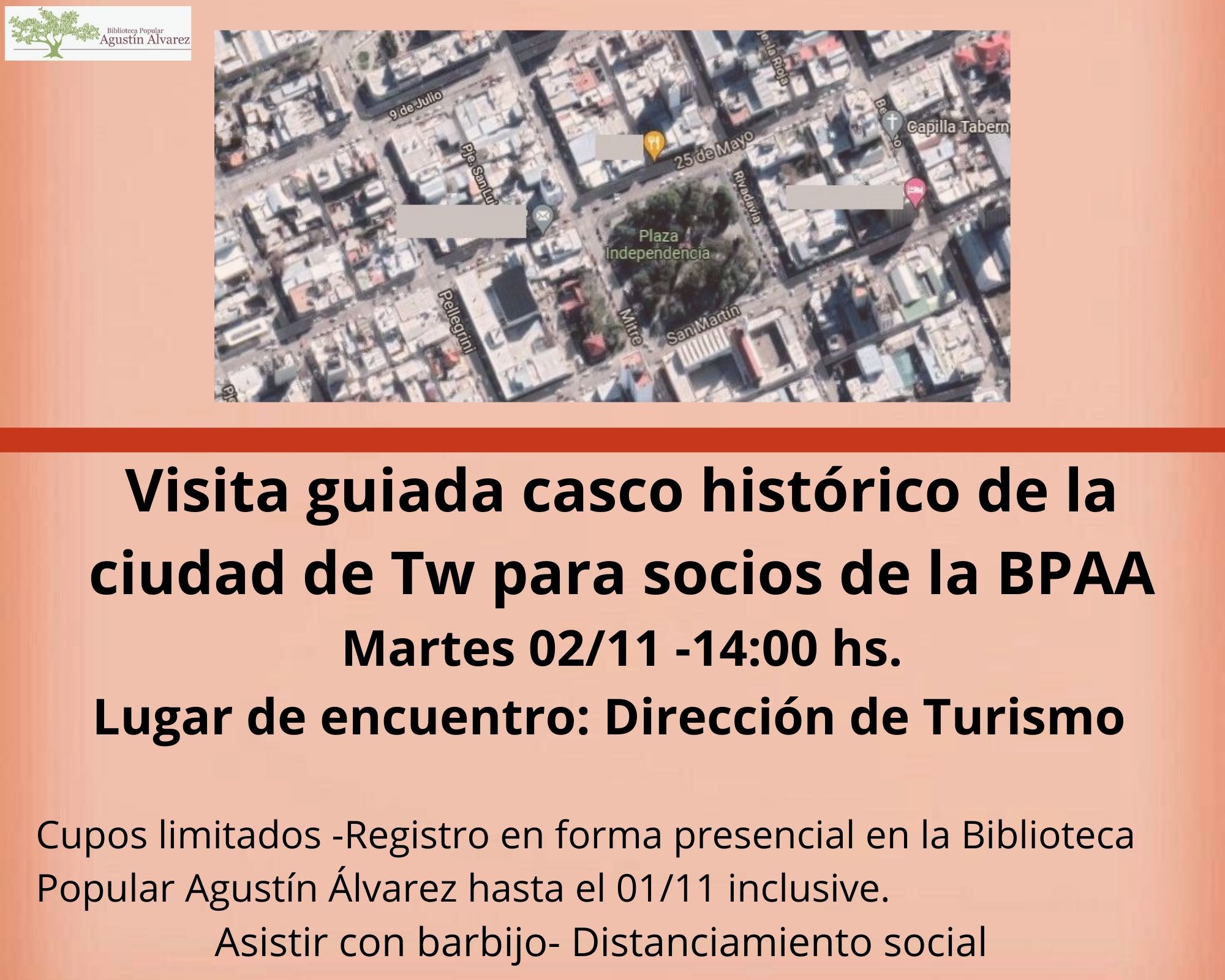 Invitamos a los socios a participar de la visita guiada, para conocer el patrimonio histórico del centro de la ciudad. Es gratuita y estará coordinada por un equipo de informantes turísticos que integran la Dirección de Turismo de la Municipalidad de la ciudad de Trelew Los esperamos.
