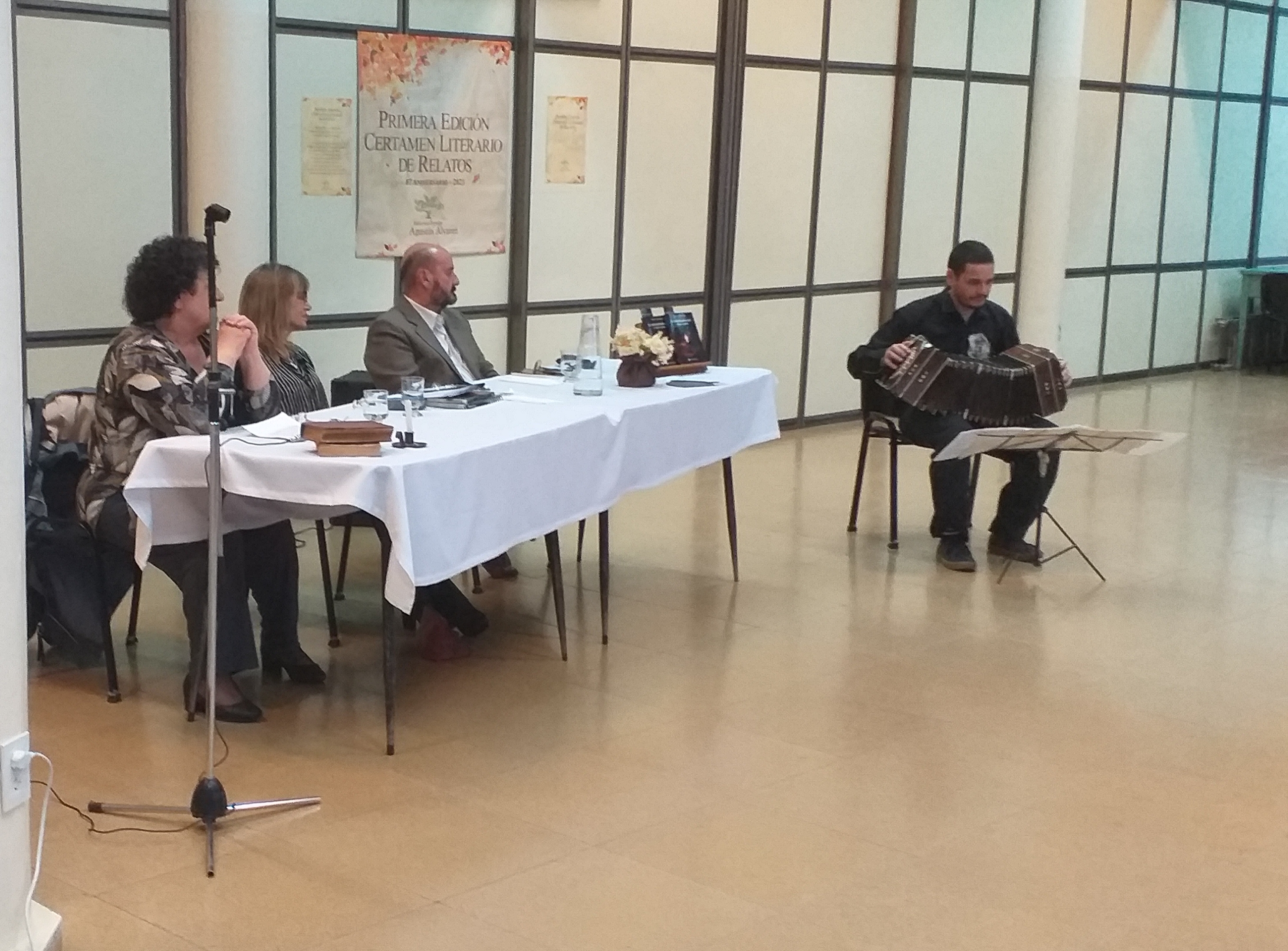 Los intervalos musicales a cargo del bandoneonista Juan Viñas que llenaron la Sala.