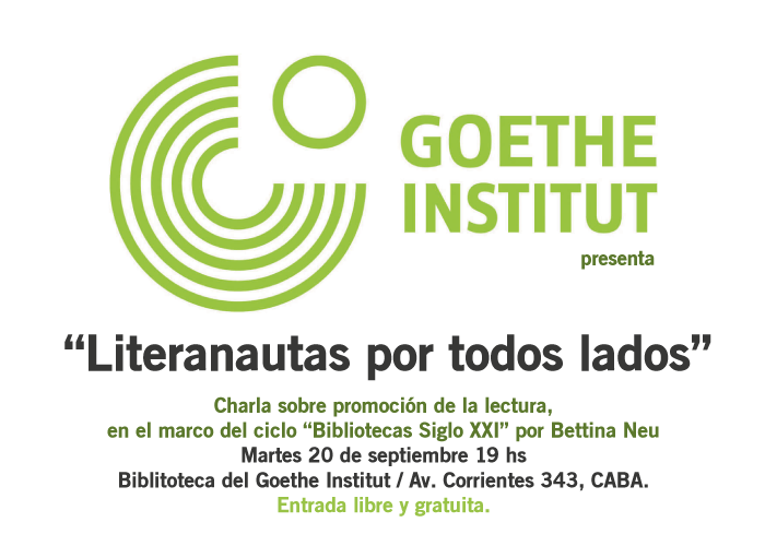 Invitada a Buenos Aires por el Goethe-Institut, Bettina Neu, coordinadora del proyecto Literanautas por todos lados, ofrecerá un workshop para directores y docentes de la red de escuelas PASCH y dará una charla abierta en la que, además de contar la historia de estos proyectos, buscará pensar junto al público nuevas maneras de involucrar a los niños y jóvenes en la promoción de la lectura. En su visión, no se trata sólo de aprender a a leer con ganas, sino también de contagiar el entusiasmo.