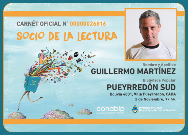 El 2 de noviembre de 2016 a las 17 hs nos visita Guillermo Martínez en el marco de la Campaña SOCIOS DE LA LECTURA.