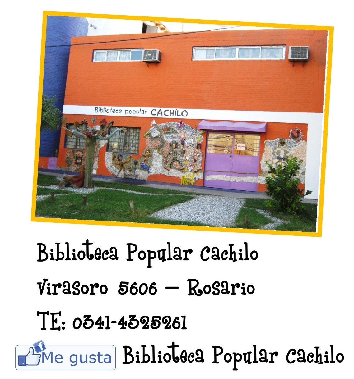 Biblioteca Popular Cachilo, junto a Aire Libre, radio comunitaria, conforman e Centro de Educación, Comunicación y Biblioteca Popular.