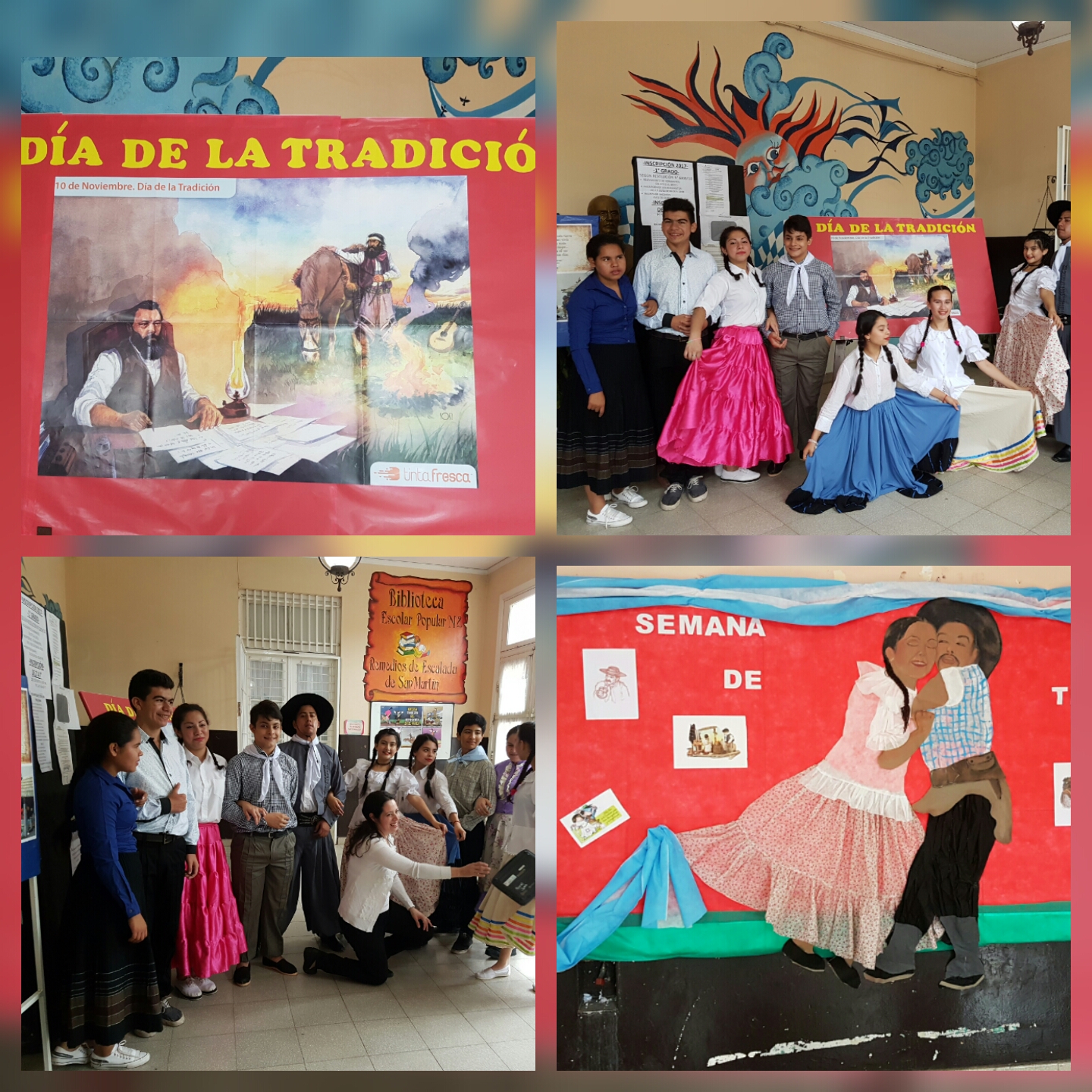 El día de la tradición se realizó un pequeño pero emotivo acto, donde se resalto la vestimenta, el baile y costumbres. La biblioteca siempre presente colaborando con los actos.